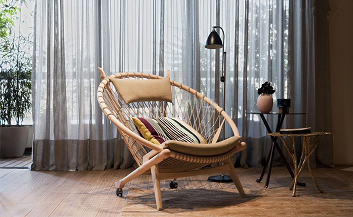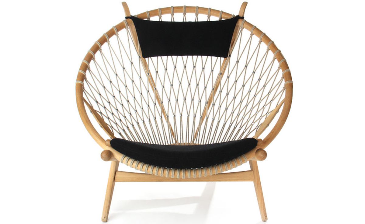 Circle Chair(圈椅)是Hans J.Wegner设计的经典作品之一,他的设计不跟随潮流,尊重传统,承袭文化,欣赏自然;是一种富于“人情味”的现代美学。Circle Chair(圈椅)的椅背是由一个圆形木质箍圈和手工编织绳索构成,网状椅背富有弹性,清凉舒适,椅座可坐两人,无论是情侣还是父母与孩子,都可亲密的坐在一起,这也是圆椅非常吸引人的特别之处。水曲柳或胡桃木木椅身,椅背网纯手工编织,枕头垫和座垫为布面。