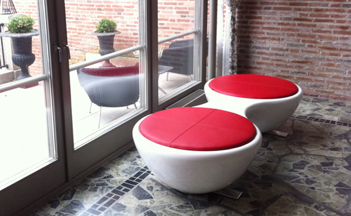 瑞典设计师Jangir Maddadi设计的这款联合座凳系列,可分为双座,三座及多坐,我司主要推出两座及三座,分别为:Union 2-seater Bench(联合双座凳)和Union 3-seater Bench(联合三座凳)。大家都知道,一般的座椅都是可以一个人或多个人一起坐,相互之间都不会受到影响。而这款连体休闲座椅却不同,外形很像一只陀螺,使用起来很像一个不倒翁,上面最多可以坐四个人。但是设计师并没有将这样的座椅让它们独立出现,而是用三张同样的座椅链接在一起,并且形成一个90度的直角,这样无论是陀螺还是不倒翁,都会很稳定的供给我们使用。当然,理论上来说,生产这种椅子,不仅可以做3件连体,4个,6个……都可以做。只是要考虑运输问题,或许3个是最完美的。这款连体休闲座椅不仅外形很优秀,而且还更加实用,使坐在上面的人有更多的空间,而且还可以保持面对面的互动。
