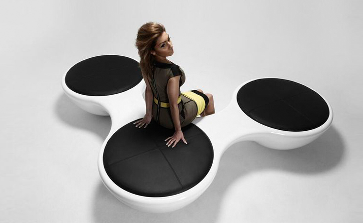 瑞典设计师Jangir Maddadi设计的这款联合座凳系列,可分为双座,三座及多坐,我司主要推出两座及三座,分别为:Union 2-seater Bench(联合双座凳)和Union 3-seater Bench(联合三座凳)。大家都知道,一般的座椅都是可以一个人或多个人一起坐,相互之间都不会受到影响。而这款连体休闲座椅却不同,外形很像一只陀螺,使用起来很像一个不倒翁,上面最多可以坐四个人。但是设计师并没有将这样的座椅让它们独立出现,而是用三张同样的座椅链接在一起,并且形成一个90度的直角,这样无论是陀螺还是不倒翁,都会很稳定的供给我们使用。当然,理论上来说,生产这种椅子,不仅可以做3件连体,4个,6个……都可以做。只是要考虑运输问题,或许3个是最完美的。这款连体休闲座椅不仅外形很优秀,而且还更加实用,使坐在上面的人有更多的空间,而且还可以保持面对面的互动。