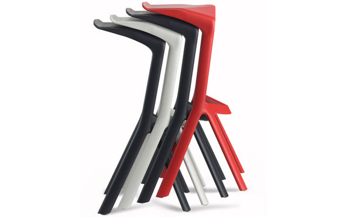 Miura Stool(鲨鱼嘴吧凳)是德国设计师Konstantin Grcic(康士坦丁·葛切奇)的设计作品,由增强聚丙烯生产(注入),一体成型。创新注射技术以及家具生活对高脚凳的需求,使Miura Stool(鲨鱼嘴吧凳)成为了可能。鲨鱼嘴吧凳有一个动态形状,完美的结合了人体工学,强大而富有表现力。由于其材料和功能性,其适用性非常广泛,可以用在自助餐厅、小酒馆等餐饮行业,也可用在个人家庭,养老院,商业空间等等。鲨鱼嘴吧凳可提供多种颜色选择,并叠叠,减少空间占用。