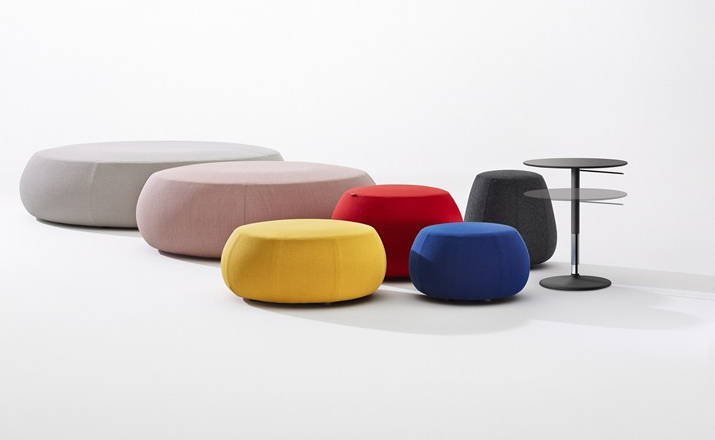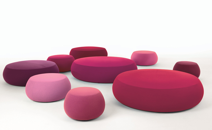 Pix Pouf系列家庭垫脚软凳由日本设计师Established Iwasaki设计的。形象的轮廓、柔和的色彩运用,饱满的外观,防霉实木内框架或玻璃钢内胆、高密度海绵、进口布艺或皮革(颜色可选)。可适合于不同大小的空间,如会议室、 会议活动的多功能厅,亦或是教室和放松的休闲区,还有家庭使用。这系列有四种尺寸大小 (67,87,137 和 177 厘米直径) 。无论室内外都非常合适,让劳累一天的双脚得到无限的放松。