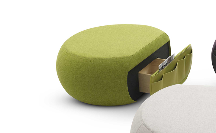 "Edam Seating Element(干酪座椅元素),荷兰室内设计师 Gert Batenburg极富创意的作品,表达了设计者想把家具融入每一个生活环境的决心,是一款多功能的家具,可用作座椅,也可以用来储物,。交感神经圆的弧面上,可供你居坐,并增加脚部的舒适感。最特别的是有一个可选的抽屉来存储所有零星的物品,比如遥控器,智能手机、 平板电脑、 期刊和报纸,慵懒而又方便。Edam Seating Element(干酪座椅元素)无论用在家庭,办公环境,候车厅,酒店等任何地方都是非常合适的。
