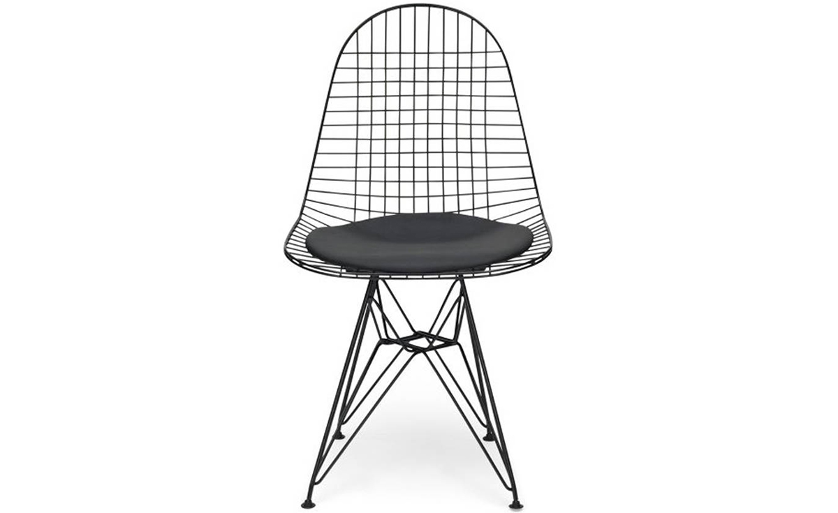 Charles & Ray Eames 1951 年發表的 Wire Chair 系列,以一片式有機網狀椅座,延伸變化出一系列不同椅腳及座墊搭配的單椅,這系列椅款輕巧透明的設計,在 60 年代可說是運用了當時最先進的技術來製作,靈感則是來自於鏤空的金屬收納籃,金屬條交織的椅座,彎曲的弧面不僅符合人體工學,在視覺上更具有穿透性。