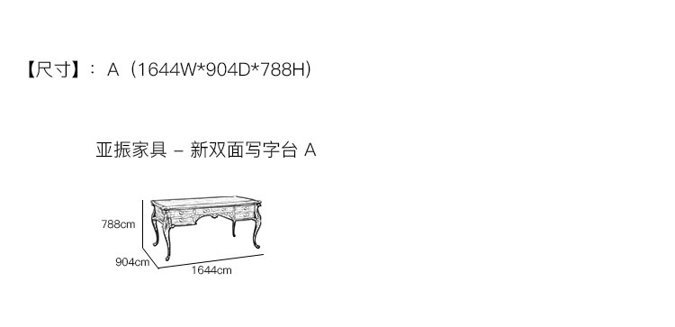 亚振家具 - 新双面写字台 产品尺寸/示意图