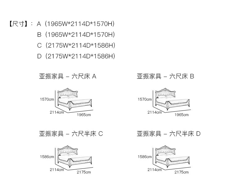 亚振家具 - 六尺床 产品尺寸/示意图