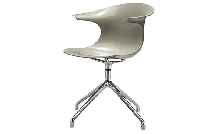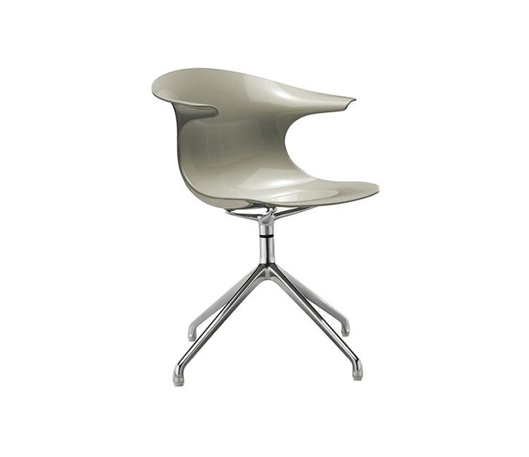 Claus Breinholt设计的Loop Swivel Chair(循环转椅)让人充满了惊喜。奇特的造型,优质的材料运用,舒适的人体工学,使它备受欢迎。制作采用透明或不透明的一体式外壳、镀铬或亚光钢制四星脚,可堆叠、镀铬钢制雪橇脚,可堆叠、旋转铝合金框架。
