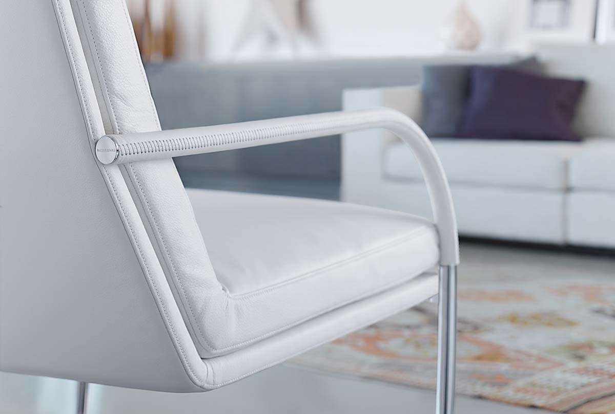 利用悬臂概念作为坐椅的设计概念,堪称世界经典之作。添加优质的内饰,顶部装有精美的软垫靠垫,让流线型靠背拥有豪华的舒适感,并拥有完美的艺术形式。George带着特别的优雅摆放在桌边,安静的优雅和低调的美观。特别是被皮革覆盖的扶手,手工缝合线的细节让人过目不忘。真正工艺的标志伴随着柔软舒适的触摸感。