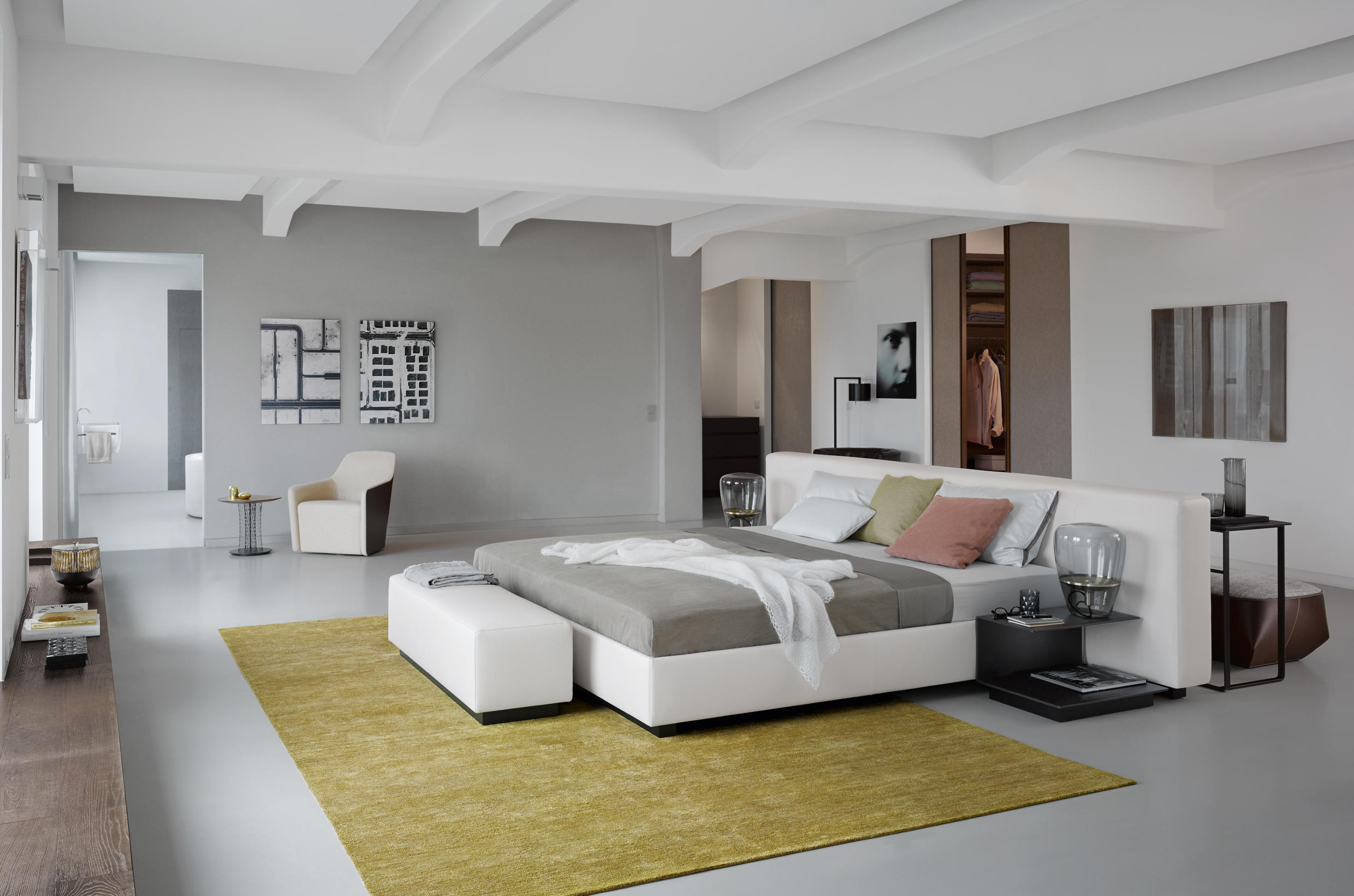 好的设计源于好的思路,Yuuto就是这样。这个软垫穿展示你睡觉的地方,自由的在一个房间里,它容纳了现代生活,为我们的衣橱、浴室、全景、为我们的私人生活的意思提供灵活的各种可能。一张软垫穿,宽敞的设计用料讲究。感觉和纯粹的美丽。