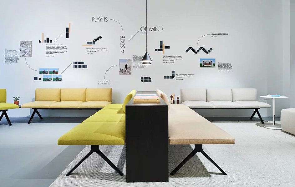集合的岛屿。活动的星座图。kiik是为进入和离开、等待和做之间的空间而创建的。这种由座椅、桌子、脚垫和控制台组成的模块化集合,以各种配置的图形形式创造了工作、聚会或放松的时刻。