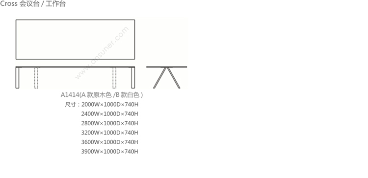 Cross 会议台/工作台 系列尺寸/示意图