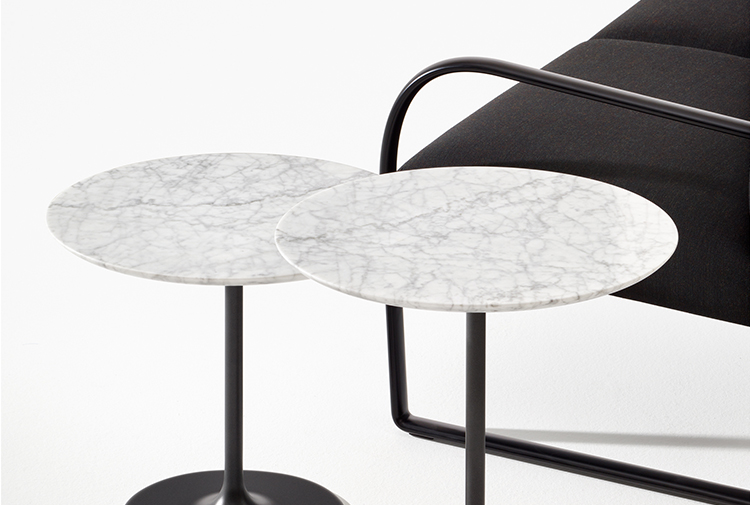 Dizzie系列扩展到包括新的白色意大利大理石桌面。 时尚而精致的大理石桌面有酒吧和边桌尺寸,每个版本有两种高度选择。 Dizzie的家居,热情好客和合约用途的有机剪影的奢华完成。