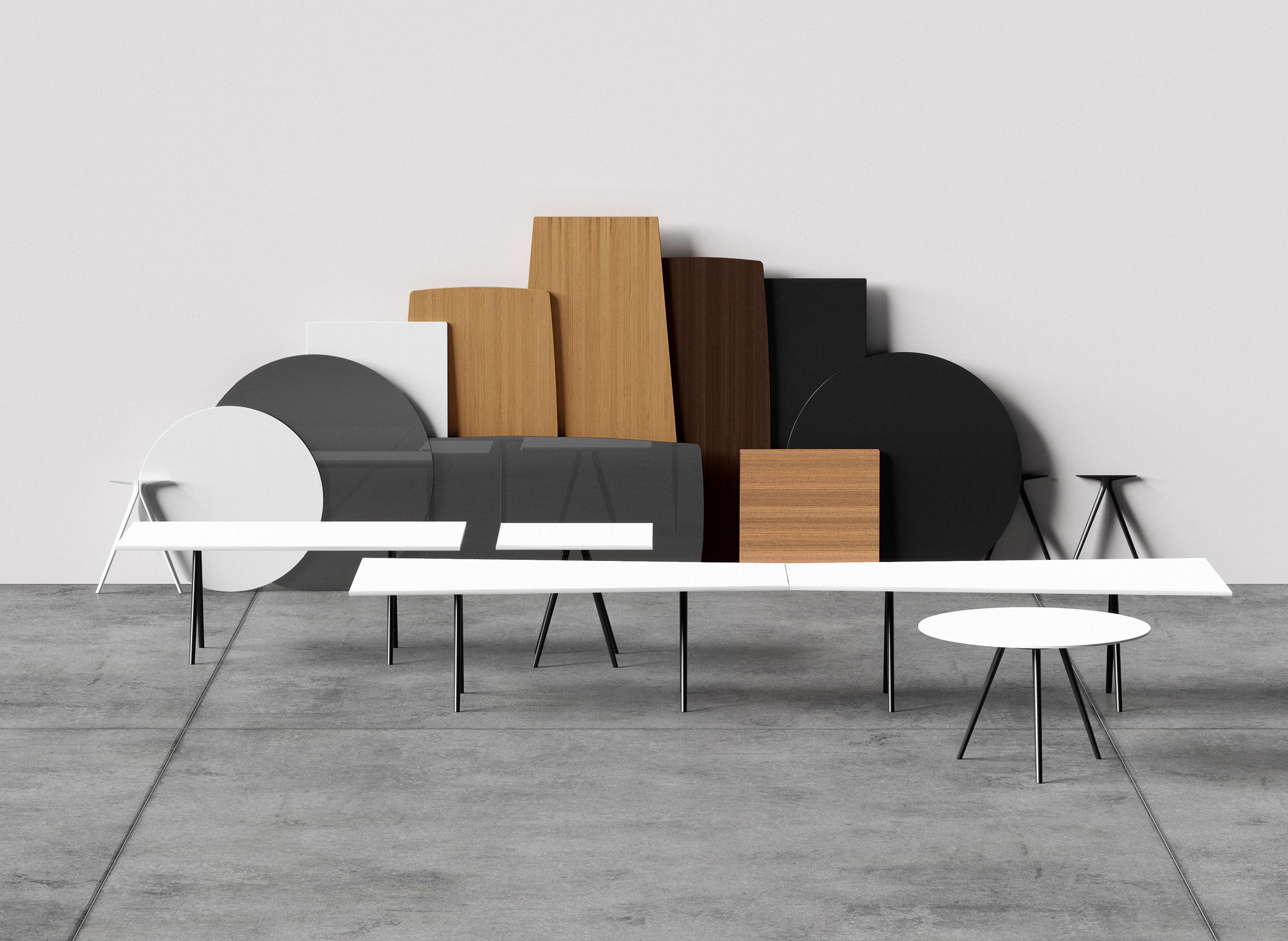 Meety由Lievore Altherr Molina设计,以表格形式模仿Catifa的适应性系统。灵感来自桥梁的建筑结构 - 强大而轻盈 - Meety的铝制支腿形成坚固的结构,顶部看起来漂浮或悬停。 Meety采用适应性强且动态的桌面系统,可实现最佳定制,Meety通过其铸铝支腿保留其独特的特性,可无缝集成到多种桌面选项中:尺寸,比例和材料。多样化的自定义功能可以为任何环境(家庭,工作和生活)提供量身定制的优雅系统。