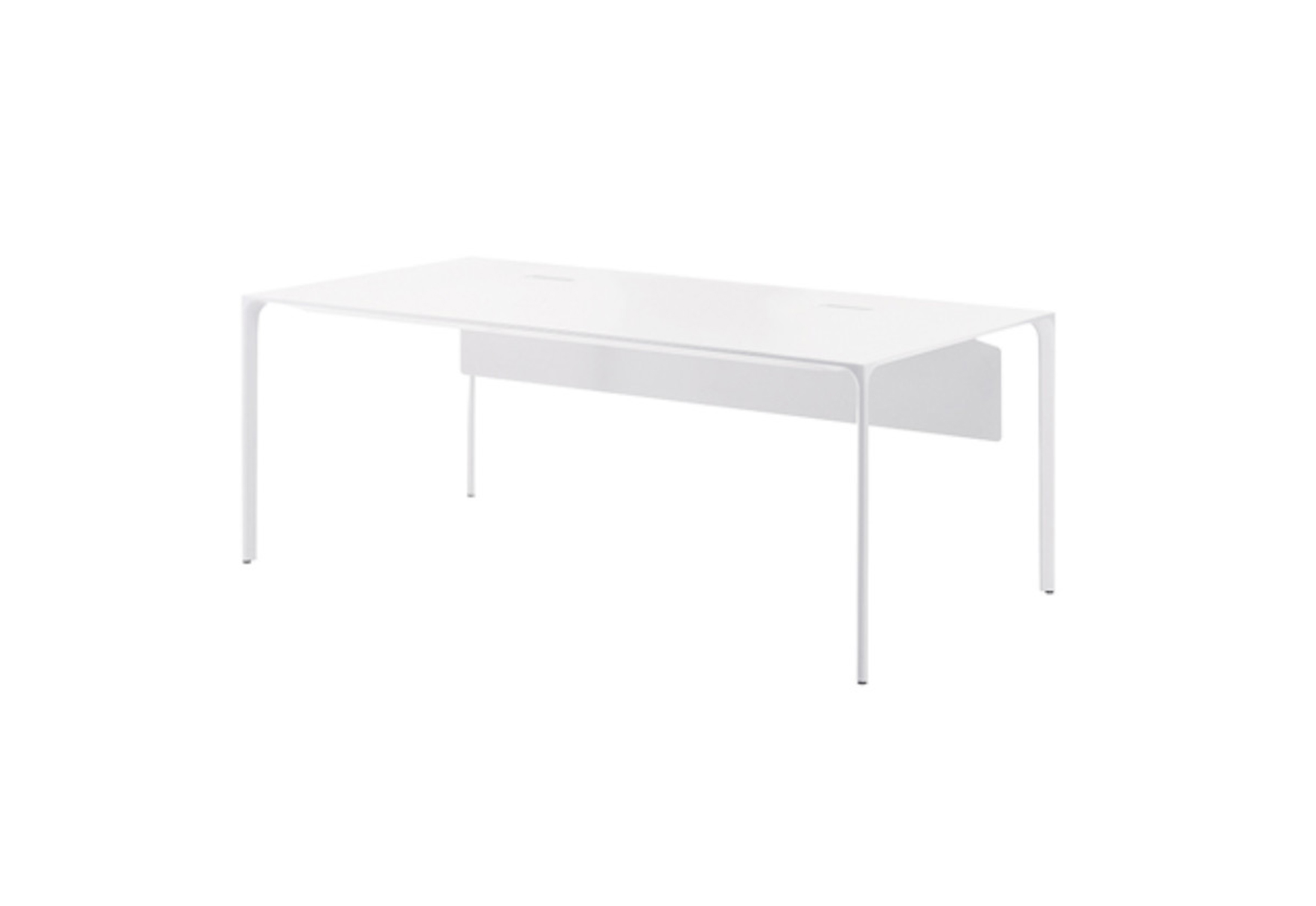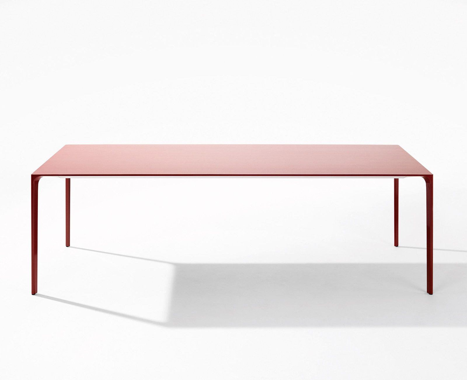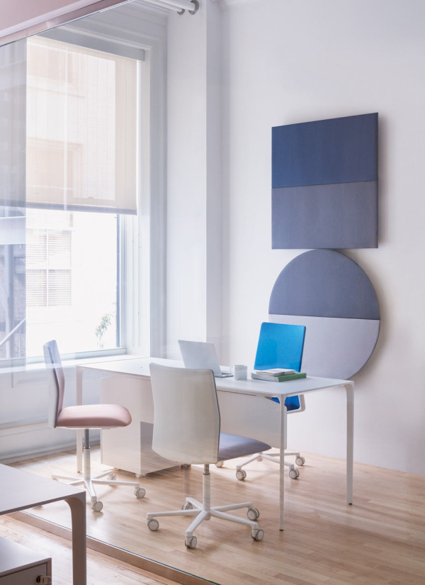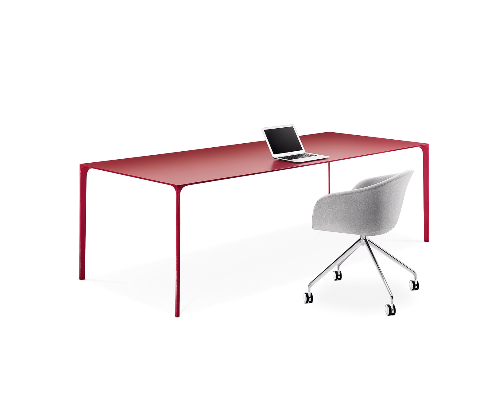 Nuur有方形或矩形两种形式,层压顶部有多种颜色可供选择,也可采用木饰面板制成。 高度可调节的结构采用抛光或涂漆铝制。