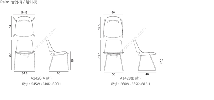 Palm 洽谈椅/培训椅 系列尺寸/示意图
