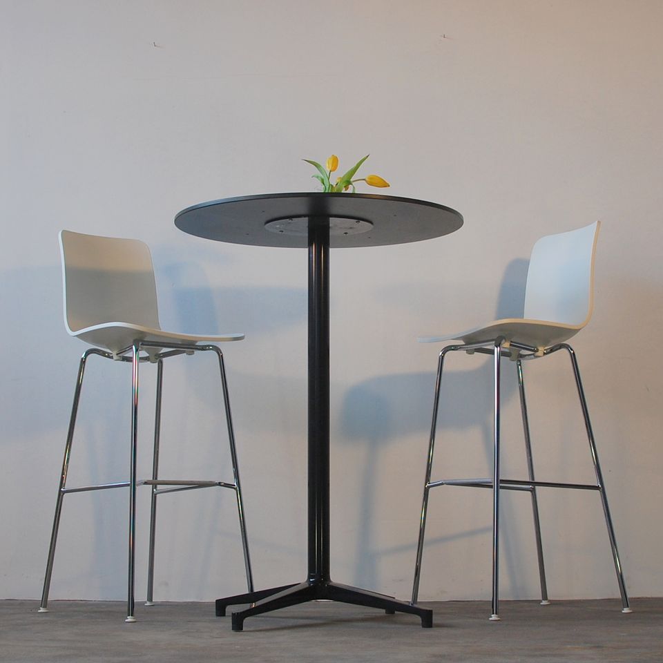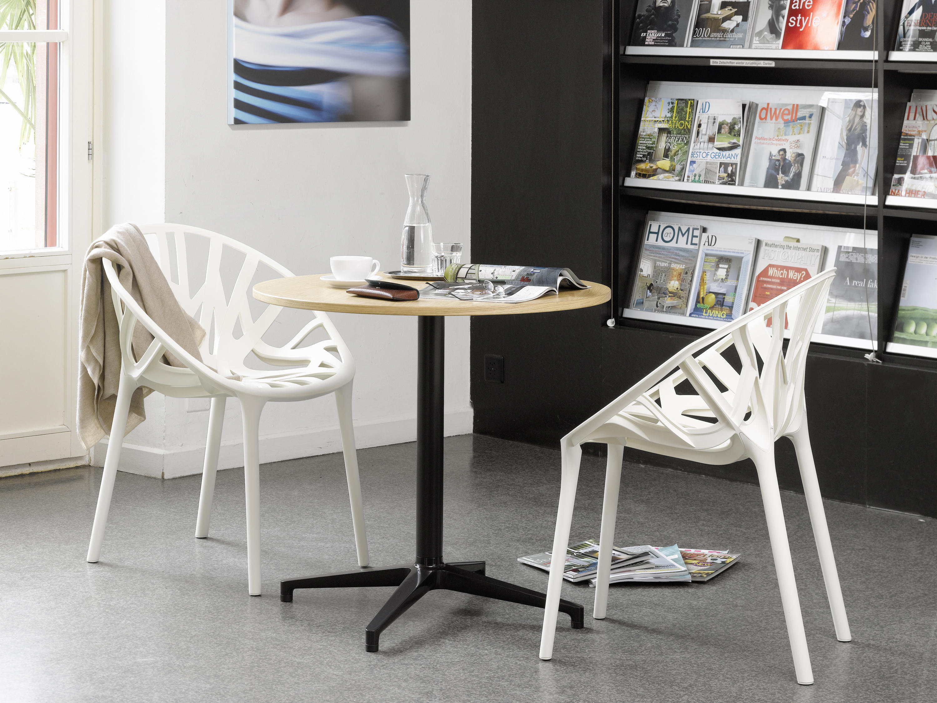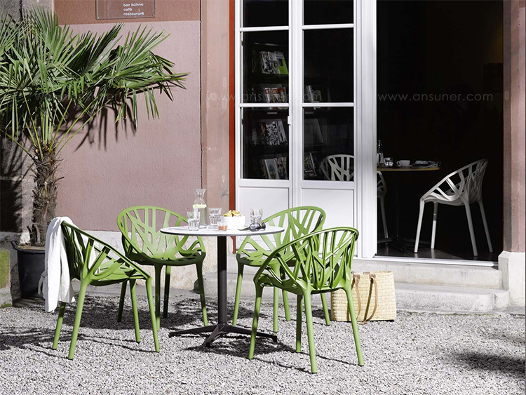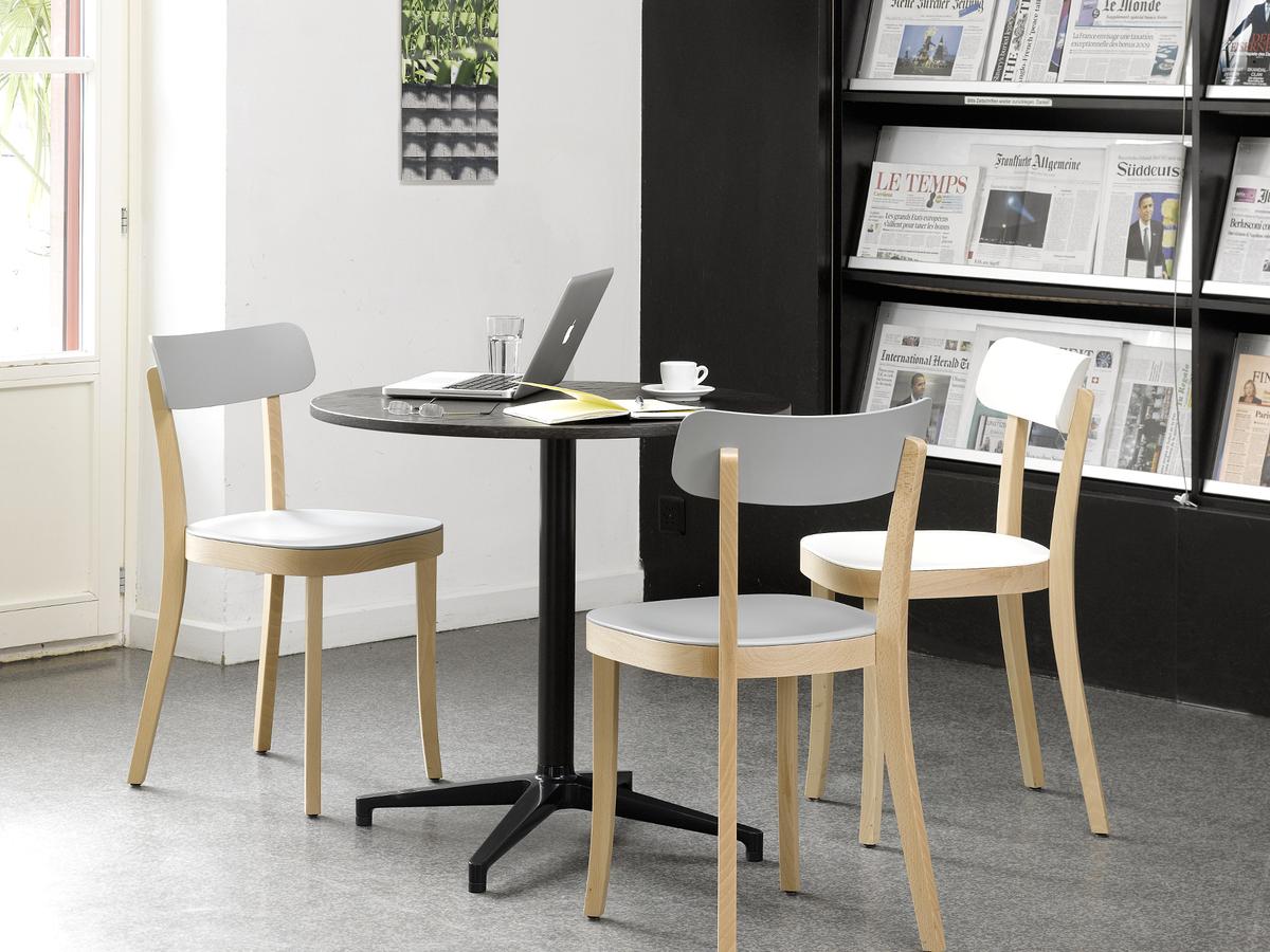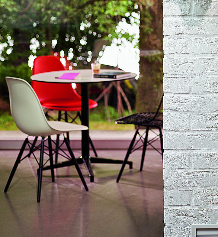 Ronan和Erwan Bouroullec的Bistro Table(2009/2010)拥有优雅的十字形底座和低调的设计,也适合户外使用,配有坚固的核心桌面。