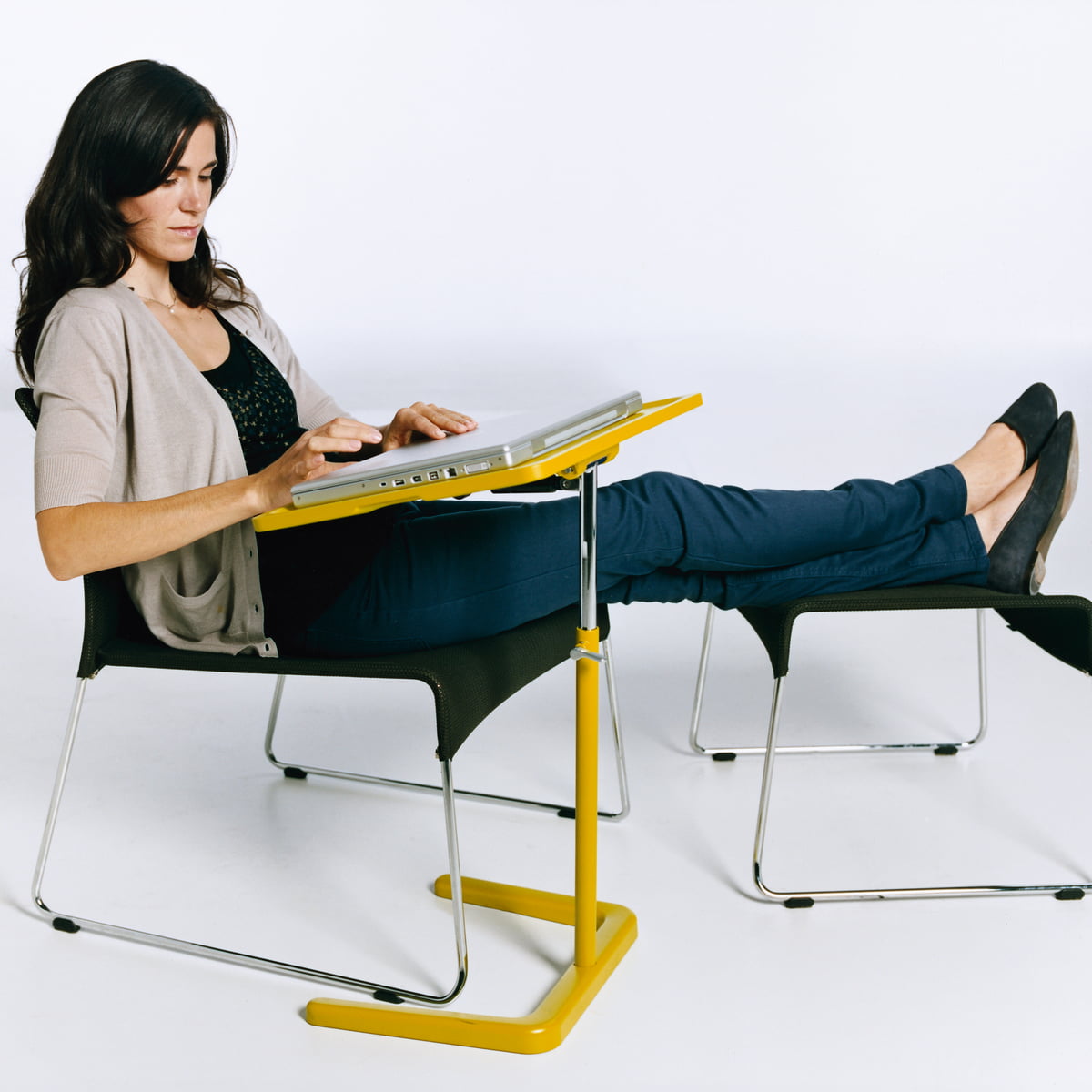 由于技术创新,现在几乎可以在任何地方使用笔记本电脑 - 但通常缺乏合适的家具。 NesTable是在家中沙发或扶手椅上工作的理想解决方案:托盘平台的高度和角度可完全调节,底座的形状允许用户在大多数类型的座位附近绘制它。