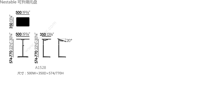 NesTable 可升降托盘 系列尺寸/示意图