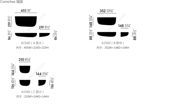 Corniches 墙架 系列尺寸/示意图