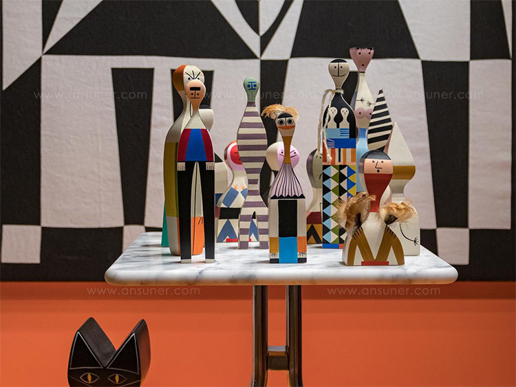 Alexander Girard的木制娃娃是一个代表人类和动物角色的大型木制家族。 吉拉德于1953年设计了他们作为圣达菲家中的装饰物品。 这些原件是维特拉设计博物馆馆藏的吉拉德庄园的一部分,作为当前重新版本的模型。 精确地复制到最后的细节,许多不同的木制娃娃今天仍然是手工制作和绘制的,就像Alexander Girard的复古作品一样。 即使它们之间的差异非常微小:每个木制人物都是独特的个性化产品,真正独一无二。