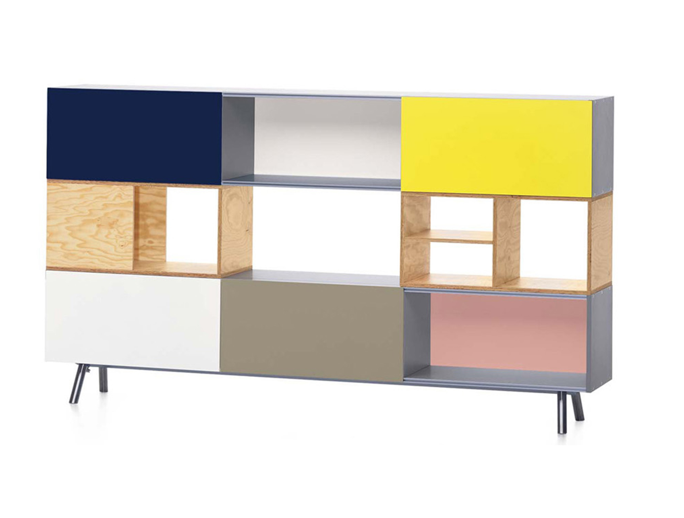 模块化结构,Kast存储单元以侧板作为基本版本开始。 对于中等高度版本,第二个基本模块放置在顶部以创建架子/壁柜组合。 在最高的版本中,添加了两个简单而坚固的木质元素。 Maarten Van Severen特别关注滑动门的颜色,这不仅强调了Kast的比例,而且给人一种清新和乐观的感觉。