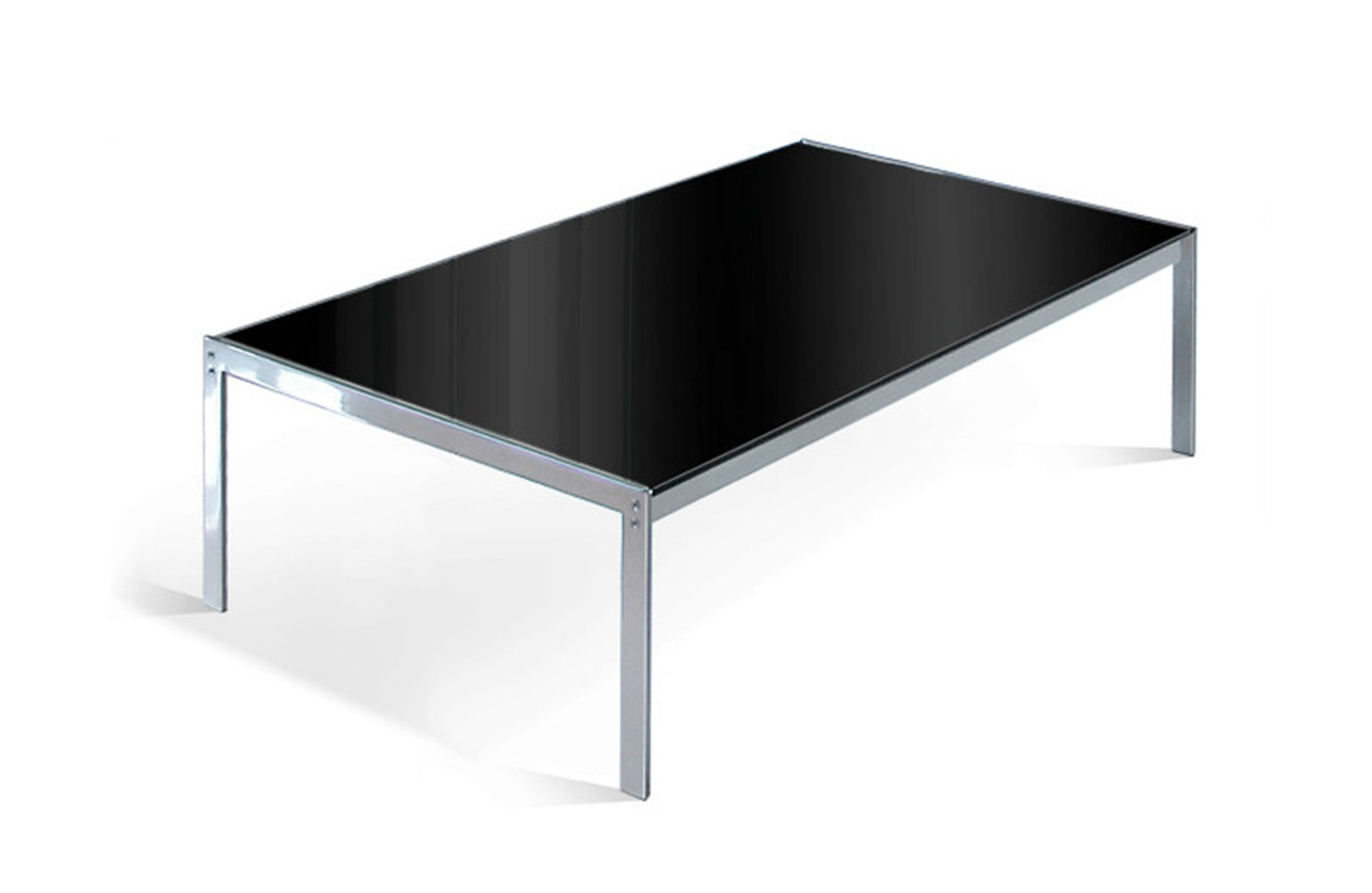 咖啡桌。10mm校准inox金属板框架。16毫米实木或8毫米玻璃顶。表面处理:金属框架采用光泽镀铬处理。WOOD顶部采用木质饰面或微纹理漆。玻璃顶部采用半透明玻璃或黑色漆面玻璃。