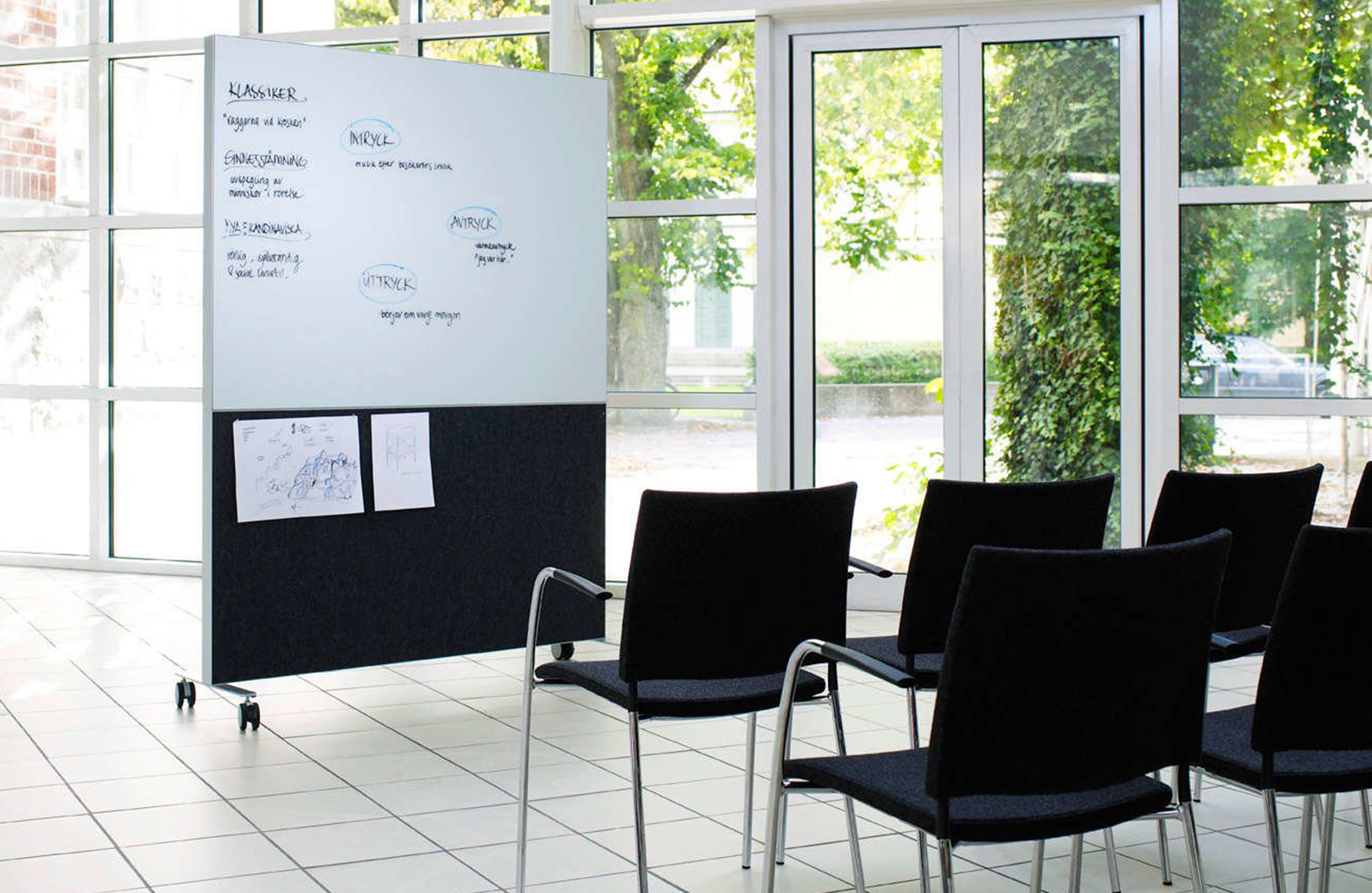 Alumi Combi屏幕的一面采用低调图案的毛毡面料或Blazer面料进行装饰。另一面可以面对书写板ra公告板 - 或两者兼而有之,例如,上半部分由书写板和公告板的下半部分组成。其中一半也可以装饰。Alumi Combi Light是一款小型版,一面完全由书写板组成。与Alumi Combi一样,它的另一面覆盖着低调图案的毛毡面料或Blazer面料。