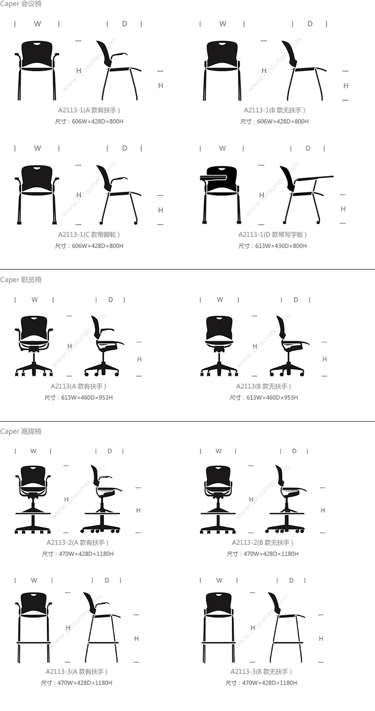 Caper 会议椅 系列尺寸/示意图