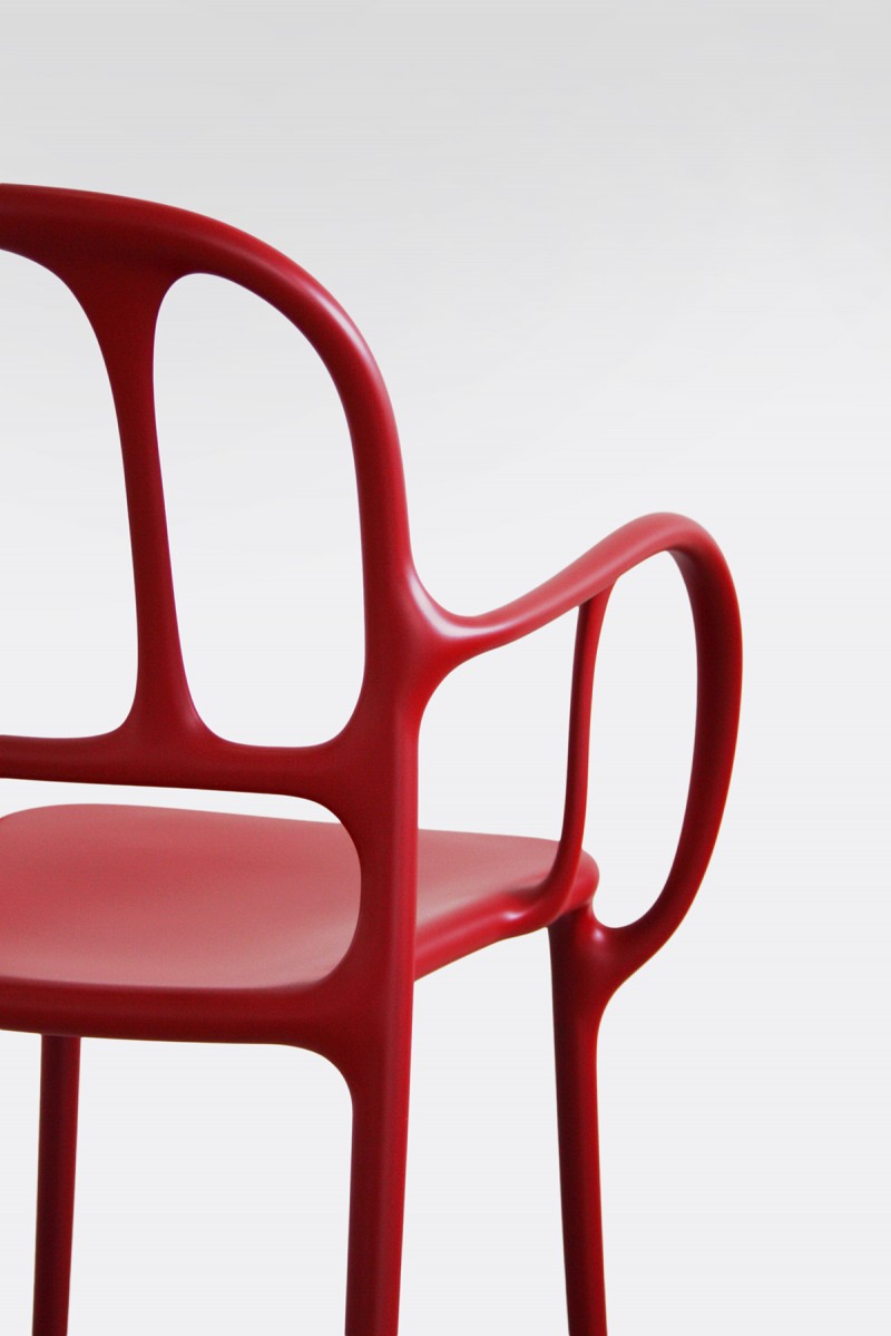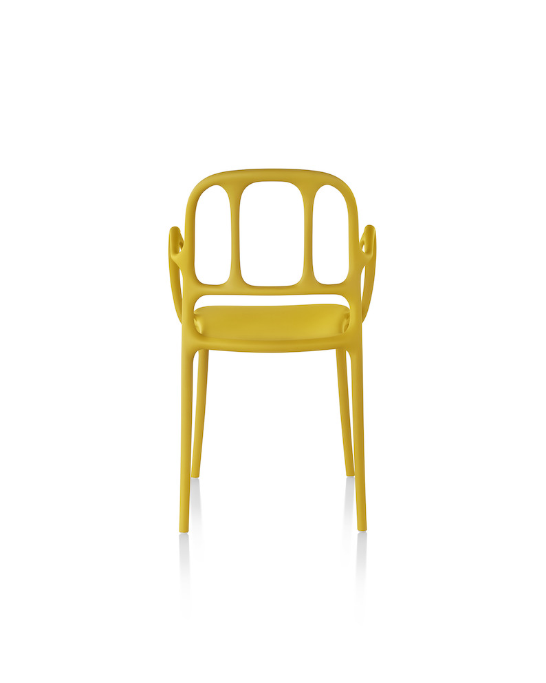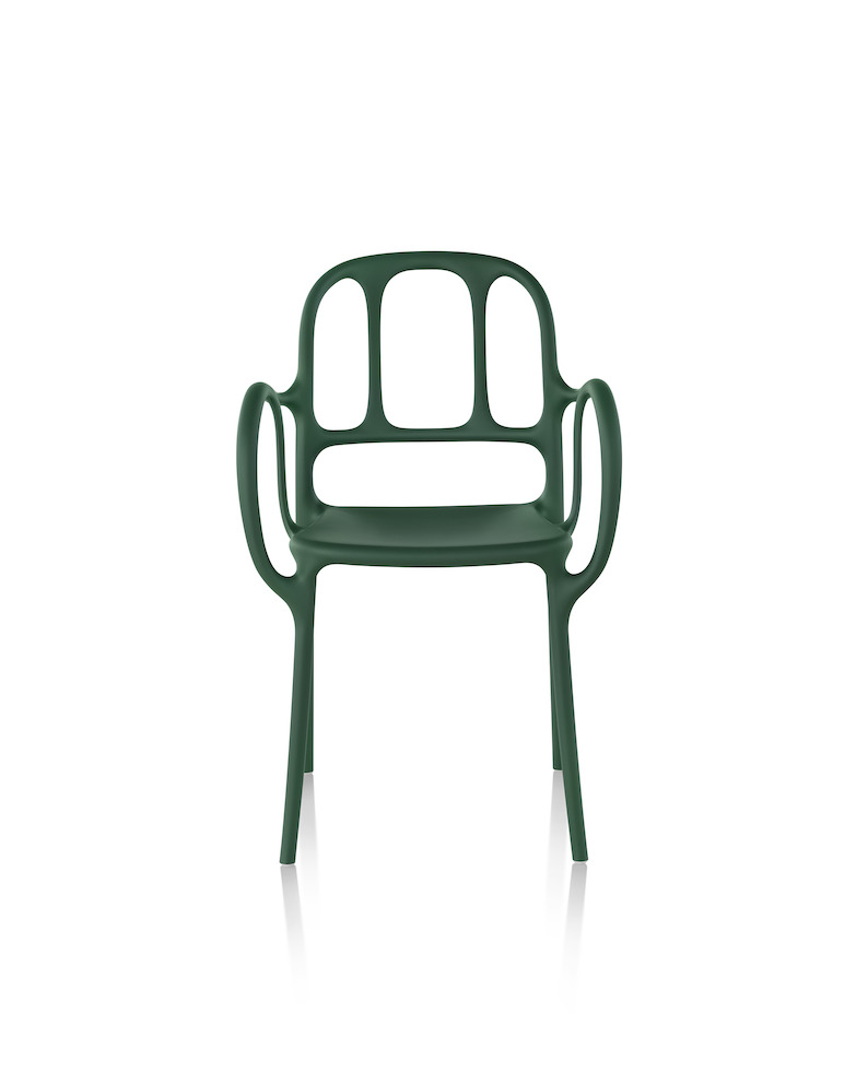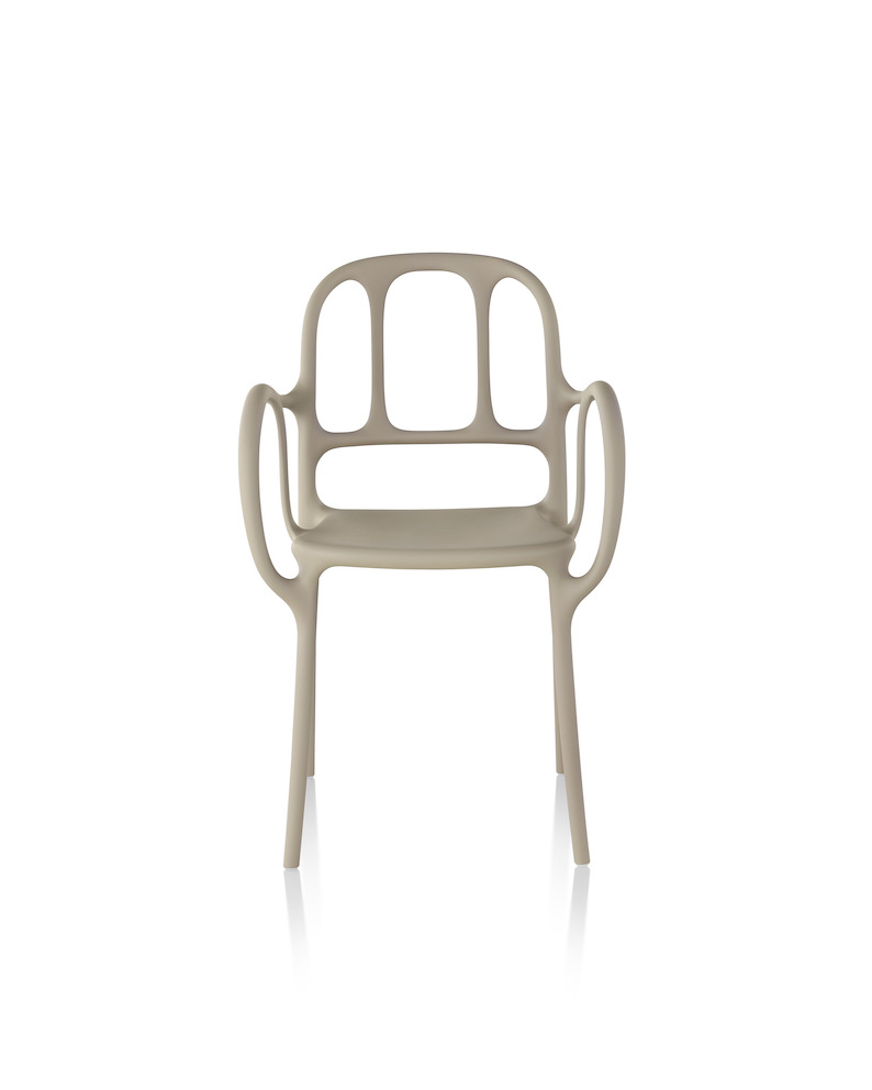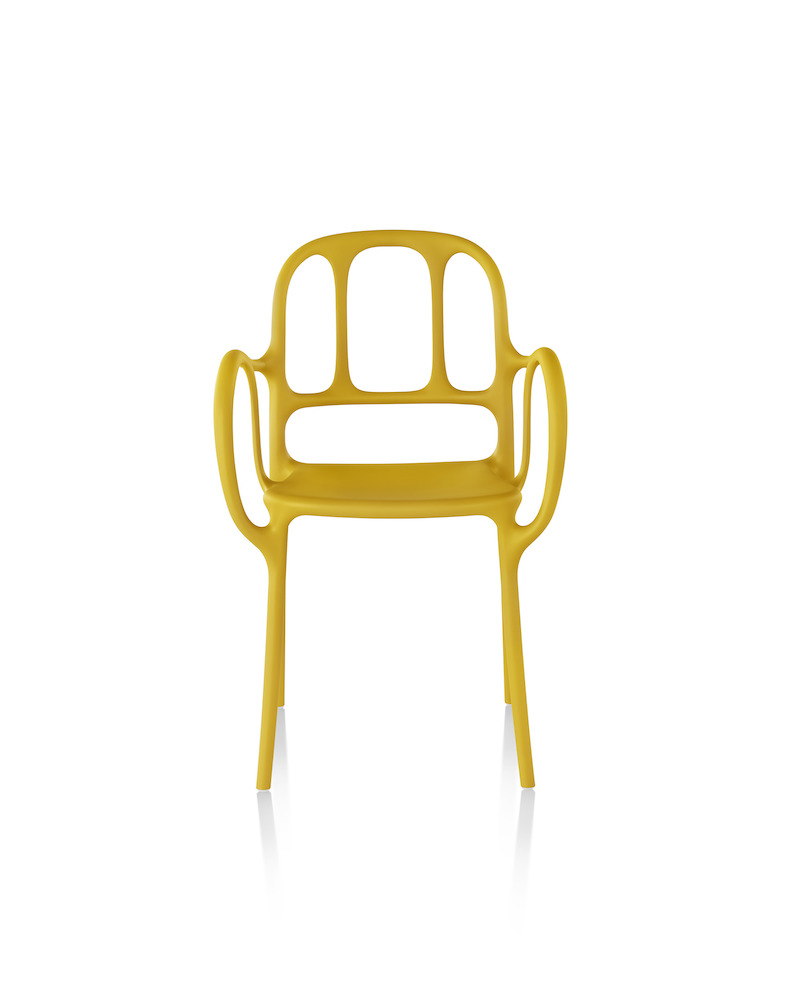 西班牙艺术设计师Jaime Hayon使用空气成型技术来实现Magis Mila椅子的弯曲形状。它的动态的,手势线条让人想起加泰罗尼亚现代主义的影响,而它的玻璃纤维增强聚丙烯材料(这是Hayon的第一个,他通常在木材、金属或陶瓷上工作)在应用和着色方面都具有通用性。Mila的高度可达六英尺。