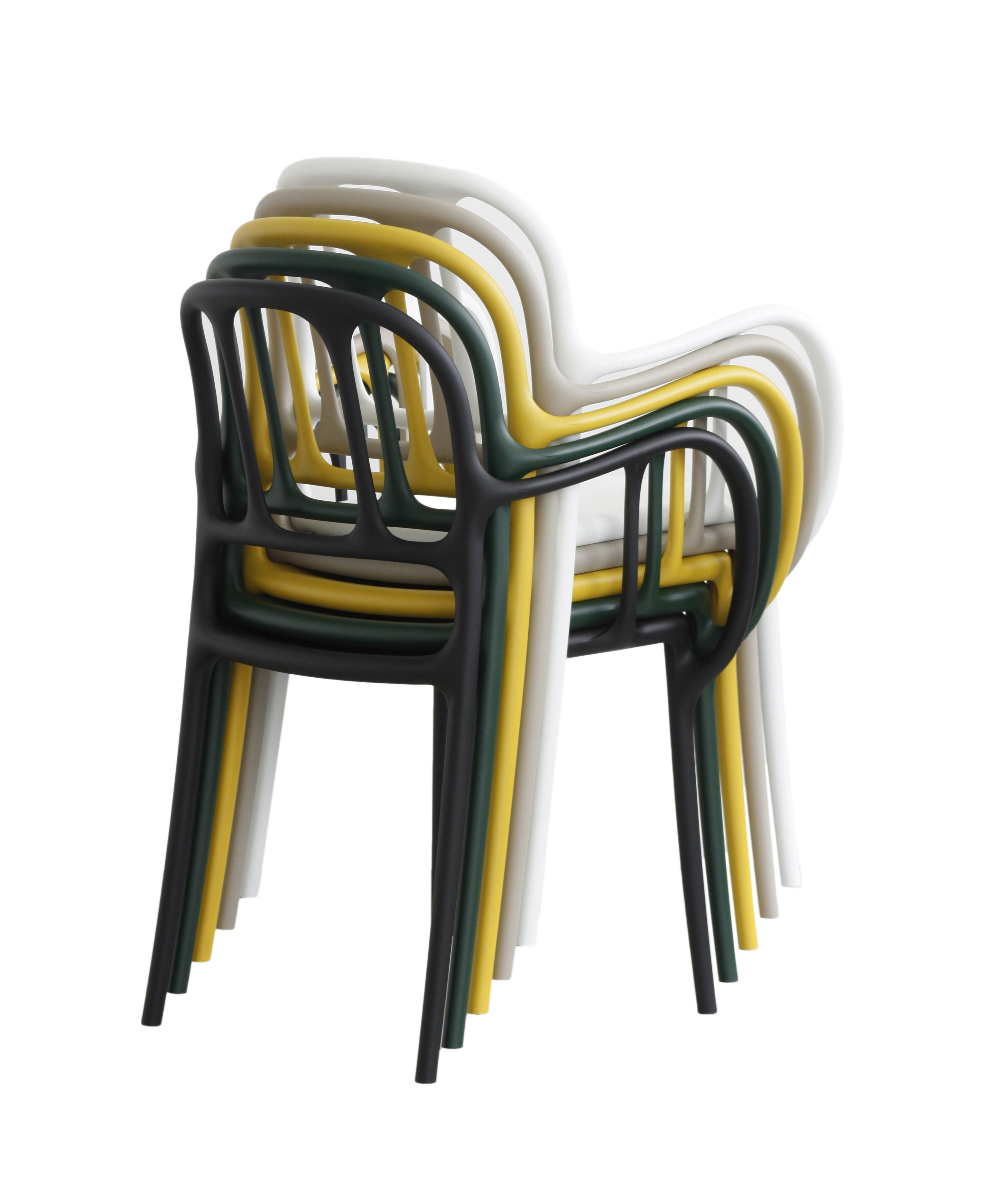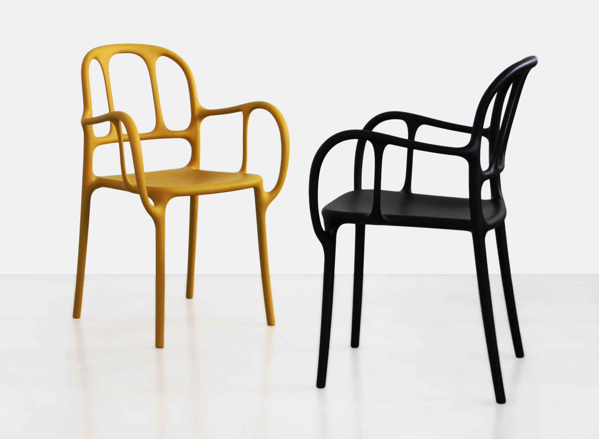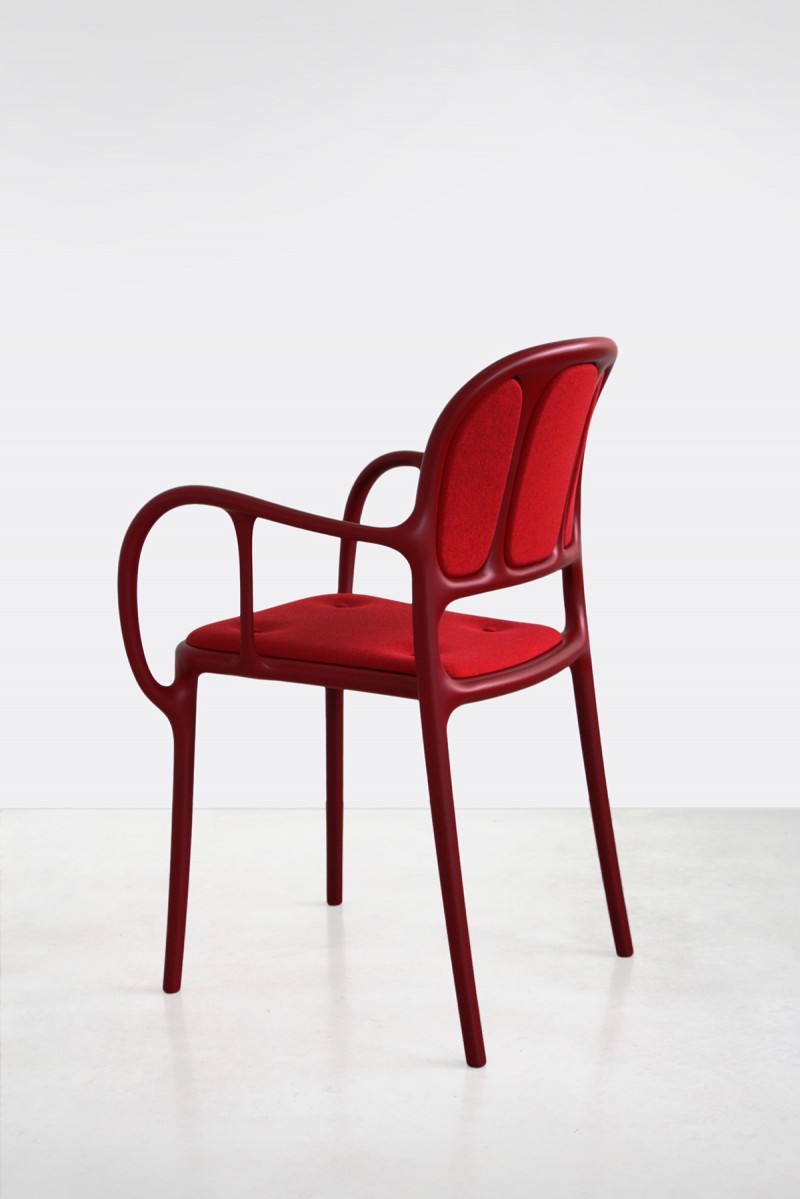 西班牙艺术设计师Jaime Hayon使用空气成型技术来实现Magis Mila椅子的弯曲形状。它的动态的,手势线条让人想起加泰罗尼亚现代主义的影响,而它的玻璃纤维增强聚丙烯材料(这是Hayon的第一个,他通常在木材、金属或陶瓷上工作)在应用和着色方面都具有通用性。Mila的高度可达六英尺。