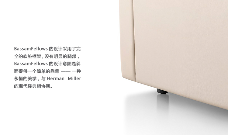 BassamFellows的设计采用了完全的软垫框架,没有明显的腿部,BassamFellows的设计意图是斜面提供一个简单的靠背——一种永恒的美学,与Herman Miller的现代经典相协调。