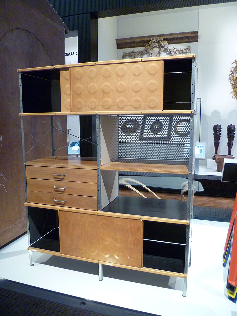 他们在底特律艺术学院为1949年的一次展览所做的工作,Eames Desk Units和Storage Units展示了“机器美学”和日本风格对当时的Eameses有重要影响。早在“模块化”和“高科技”进入语言之前,Charles和Ray Eames就以多种方式将标准化部分结合起来,创造出适合家庭和办公室各种用途的实用家具。