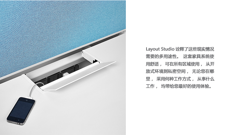 任何人都可以轻松地在Layout Studio中找到一个家庭基地。 它集成了个性化的工作工具和存储,可以在坐姿和站立高度的办公室景观中采用多种形式。 Layout Studio的选择也适用于组织。 它允许它们根据需要向上或向下扩展,以适应全局系统中的本地首选项。
