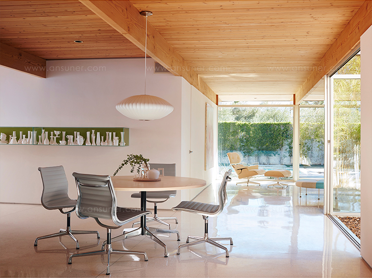 Nelson气泡灯是一组形形色色、具有球状轮廓的灯具,能散发出均匀柔和的光线。Nelson Saucer Bubble Pendant杯托型气泡吊灯宽大的形状及其不锈钢的下层结构能给人带来柔和流动的线条感,造型可爱,光线宜人,适合任何室内风格。本款吊灯有小号、中号、大号和加大号几种不同规格。George Nelson于1952年设计了这个系列的灯具,当时他偶然发现了一款瑞典吊灯,打算买回去放到自己办公室里使用。但那款吊灯高昂的价格让他犹豫了,却让他萌生出自己设计一个气泡灯系列的念头来。