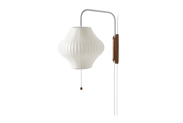 Nelson Pear Wall Sconce采用2英寸厚的实心胡桃木壁挂式支架,伸出的钢臂和12英尺的插入式电源线。 手臂上的旋转铰链可以轻松调节高度。 Nelson Bubble Lamps最初设计于1952年,当时乔治·尼尔森(George Nelson)的灵感来自于一套瑞典吊灯,这些吊灯采用丝绸覆盖物进行繁琐的制作。 然而,更大的挑战是价格昂贵。 尼尔森决定制作自己的套装,并采用创新工艺,用半透明塑料材料取代丝绸色调。