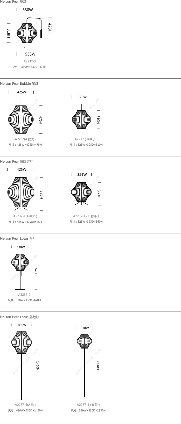 Nelson Pear 系列尺寸/示意图