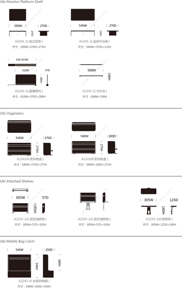 Ubi Monitor Platform Shelf 系列尺寸/示意图