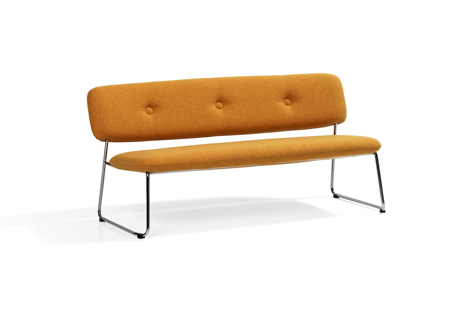 可叠放的沙发和带扶手的沙发。带软垫扶手的沙发不可叠放。木和钢制的框架。用织物或皮革覆盖的CMHR聚氨酯模压泡沫填充物。“绿色”铬合金钢制框架,铬III。塑料英尺。