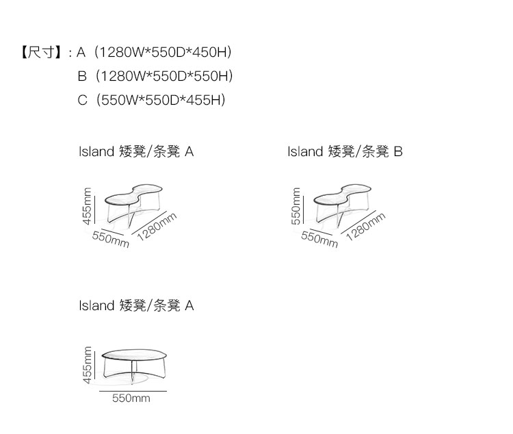 Island 矮凳/条凳 系列尺寸/示意图