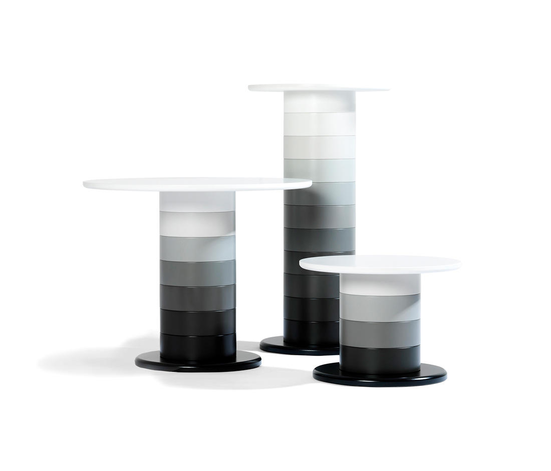 Babel -Babel是带有压模桦木环的柱形桌,漆成不同的NCS颜色。每个环增加95毫米。Babel可用于各种应用,例如小型茶几或高矮的茶几。吧台桌。模压桦木帘布层的环。用黑漆或镀铬钢覆盖的MDF踏板。用UV漆MDF制成的桌面。标准色标从黑底到白底或黑底到红顶。底脚板覆盖在黑色粉末漆或铬钢。