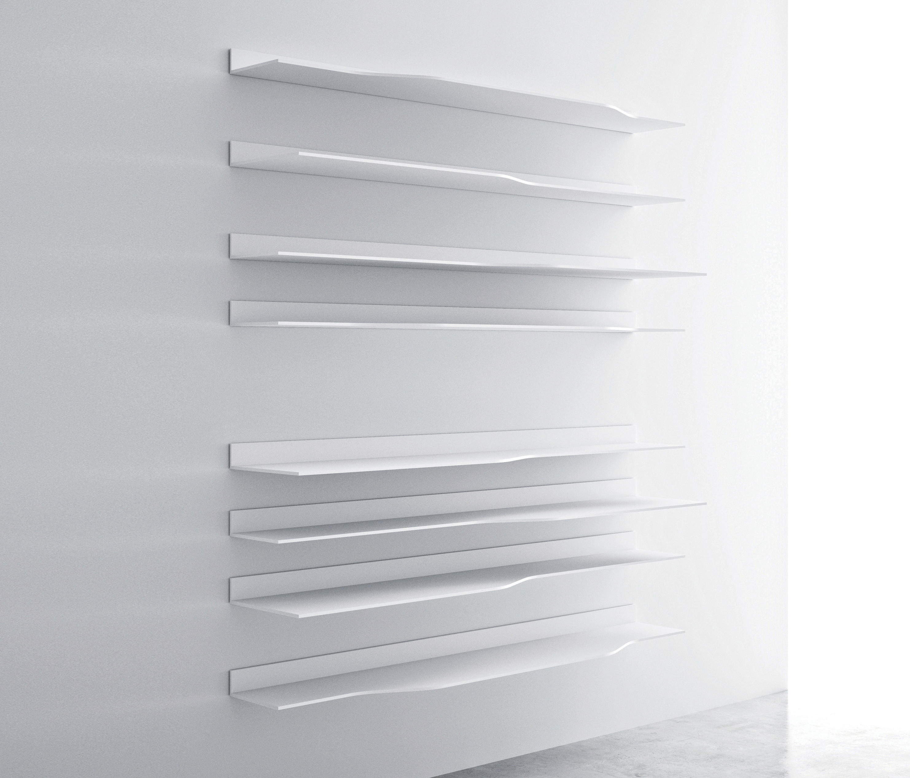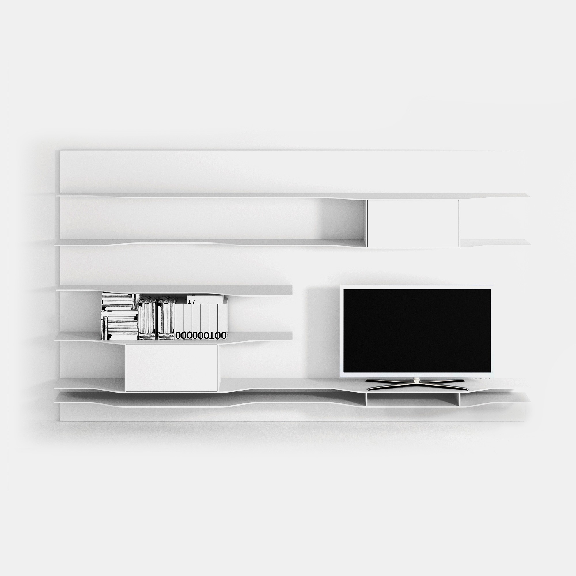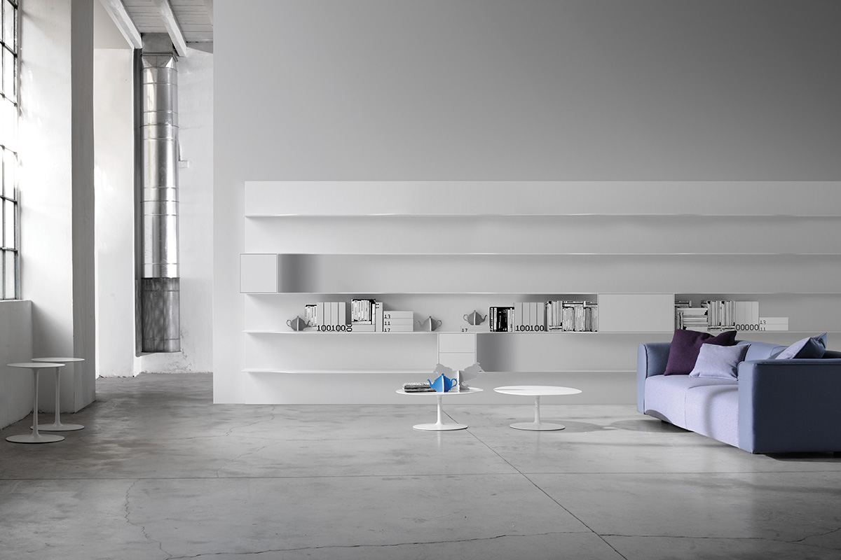 波浪壁系统,它允许开发不同的组合物,其是更受限制和稀有版,因此与少数元素使得系统更横向的房子内的非结构化版本。 视觉和功能特征保持不变,保持在设计和动态性质。原产品 搁架单元 货架由白色丙烯酸类固体表面的,厚9毫米。 一些搁板设有通过一个曲折的和精巧的设计连接深度(35/25 anD25 / 15厘米)的改变。 尺寸和类型: •L90和L180 cm矩形搁架单元,深15、25或35 cm •L90 cm前置式(左和右)搁架单元,深度可变,15/25 anD35 / 25 cm。 •L180厘米亲LED(左和右)搁置单位可变深度,35/25厘米。 •L180厘米亲率领搁架单元具有可变深度,25/35/25厘米。 他们也都在ELECTRI版版本:2个搁架单元(11.8厘米高),配备有用于电缆通道和隐藏后方的空腔。 在搁板的上部部分中,您ND对于由所述搁架的相同的材料制成的电缆管理的开口,以使向每一个可能的器具电缆出口尺寸和类型: •L180厘米亲导致ELECTRI编搁架单元具有可变深度25/35/25厘米 •L180厘米矩形ELECTRI ED搁架单元35厘米深。 可选管道,总是安装在牢固的表面上,以便在电视单元壁挂式安装时隐藏电缆。
