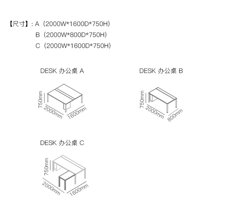 DESK 办公桌 系列尺寸/示意图