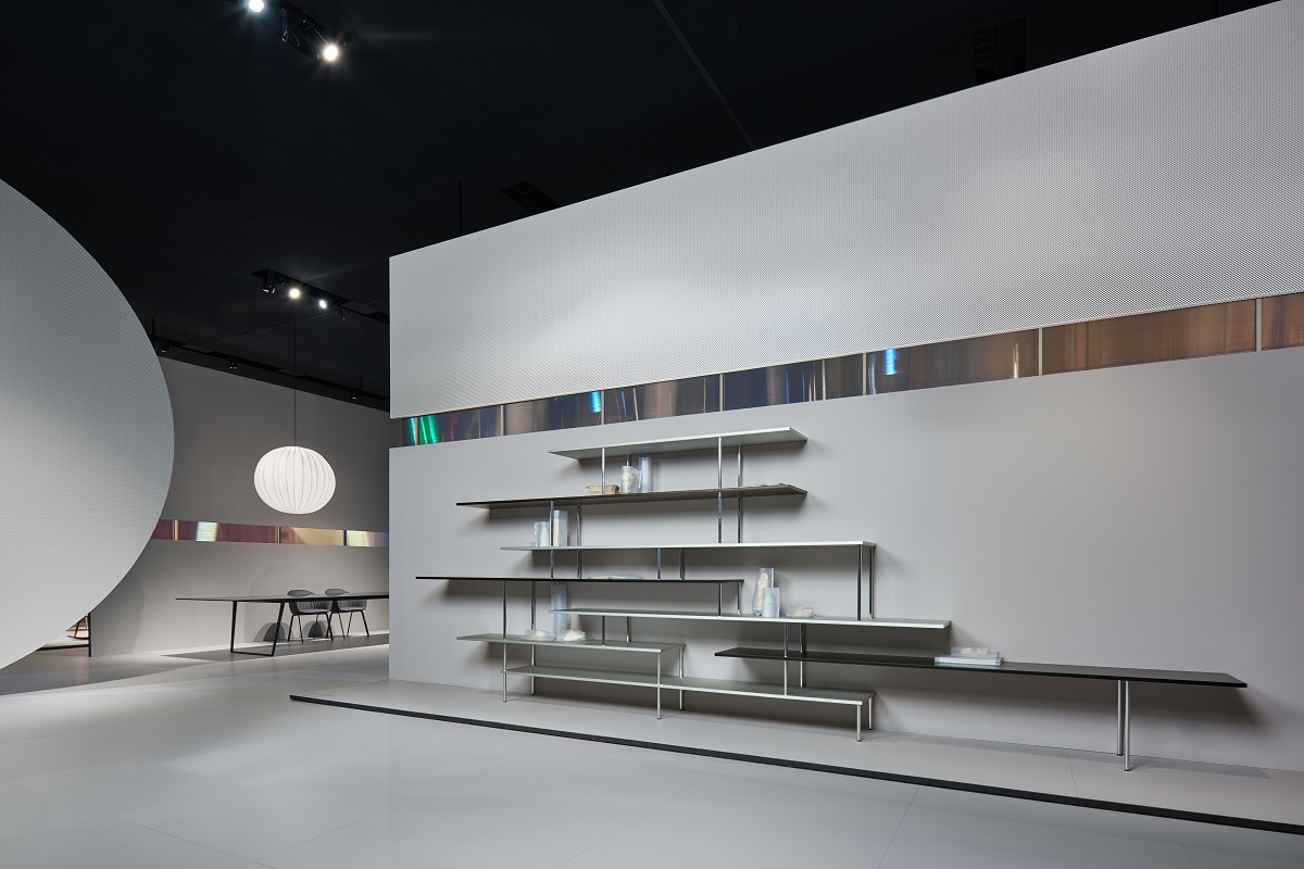 新成分:F,G,H,I,J 新饰面:哑光古铜色,哑光黑尼科尔漆,Canaletto胡桃木和漂白橡木。 正式的轻巧,图形标志,简单的设计,和谐的美学,必要性是让·努维尔设计(Jean Nouvel Design)设计的Super_Position书柜系列的标志。 重叠的线表示对水平度的重视。不间断的垂直线穿过架子,就像小跳水板一样延伸到空隙中。 物件,花瓶和雕塑可以在空的空间,重叠线的中间或末端的壁express中表达其比例差异。” Jean Nouvel