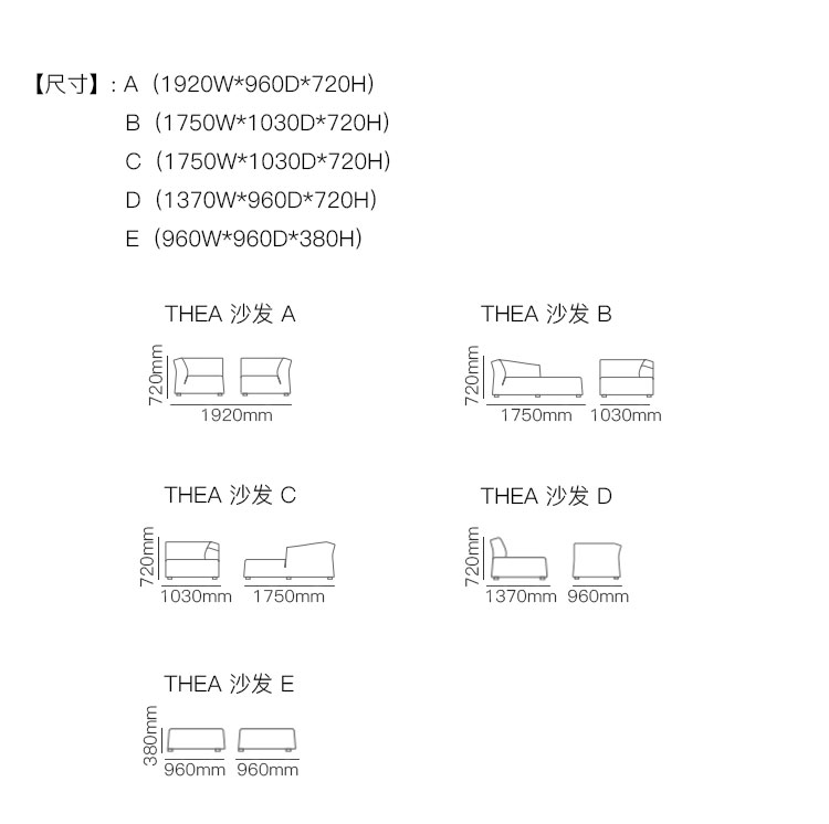 THEA 沙发 系列尺寸/示意图