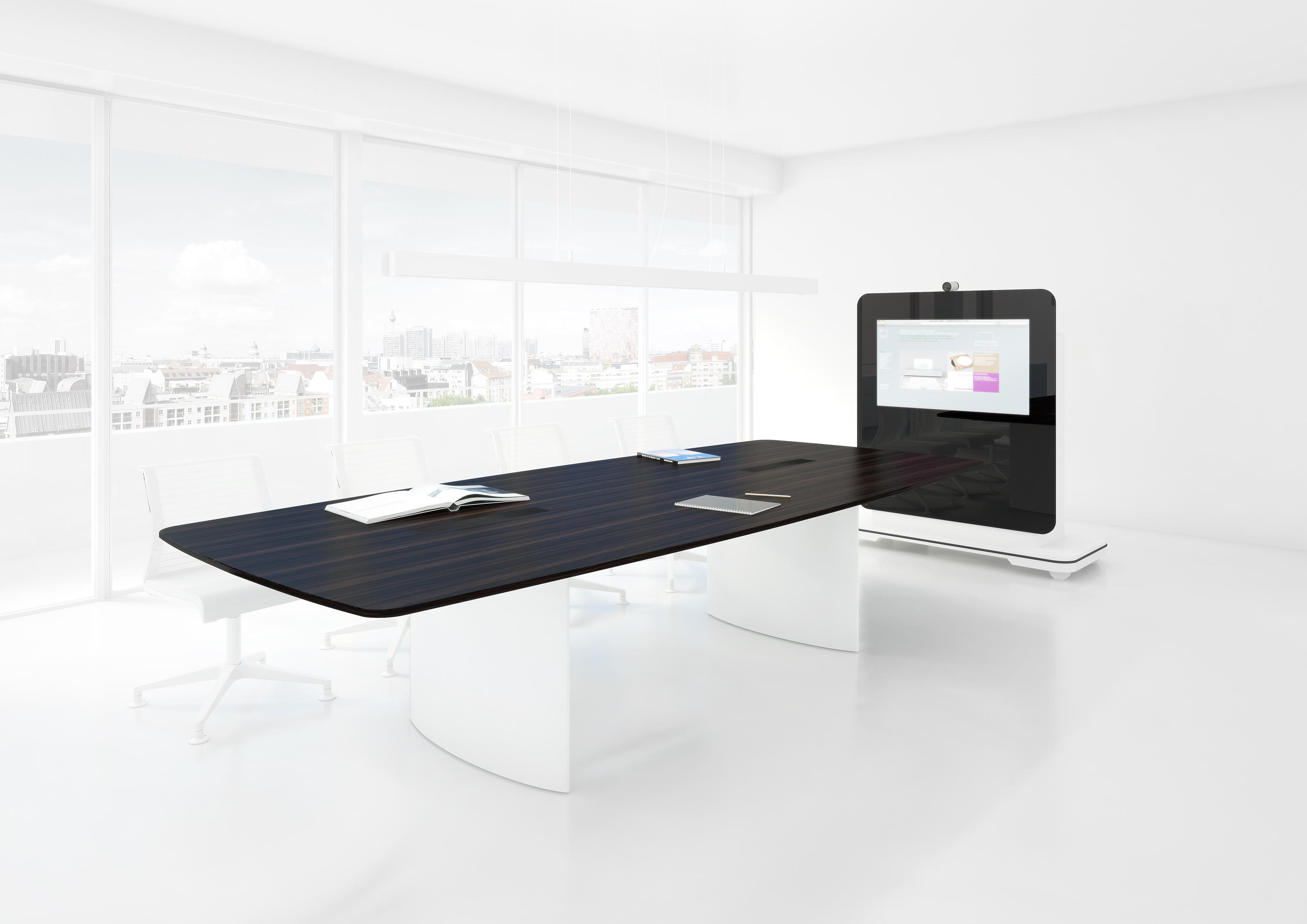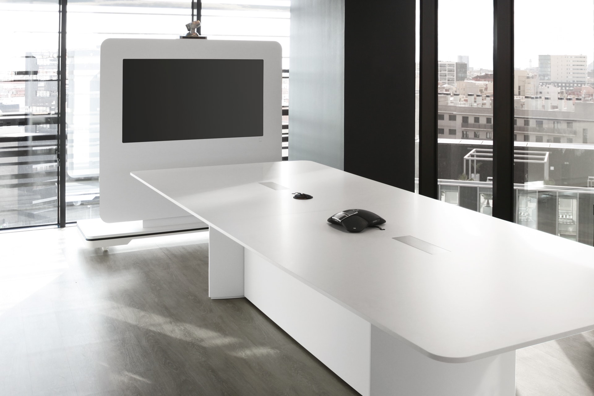 远程控制以及集成的控制面板,集成的55英寸显示,自由移动,白色或组合式——可选玻璃面板.