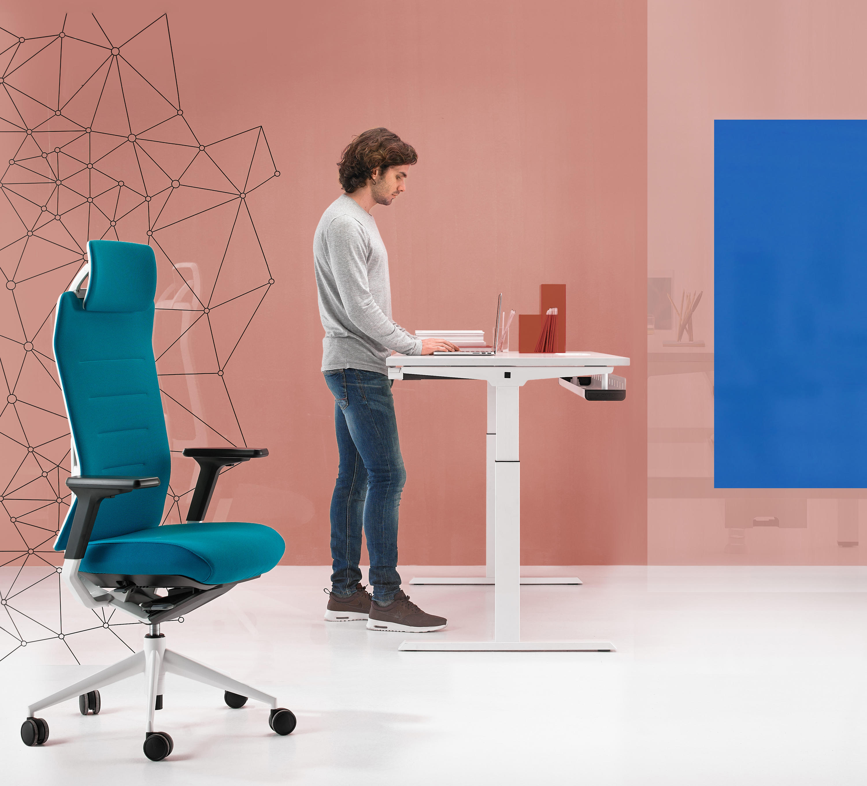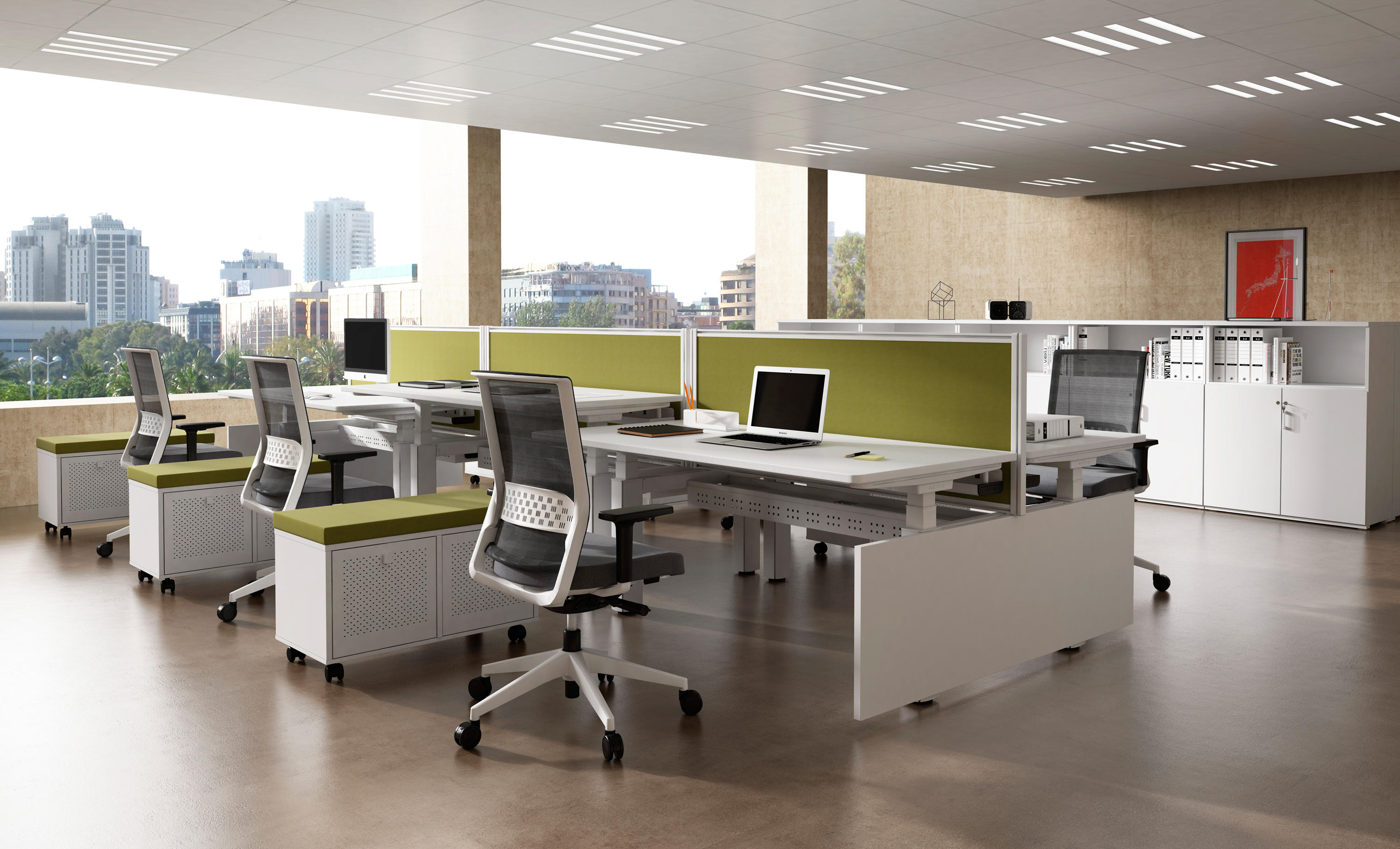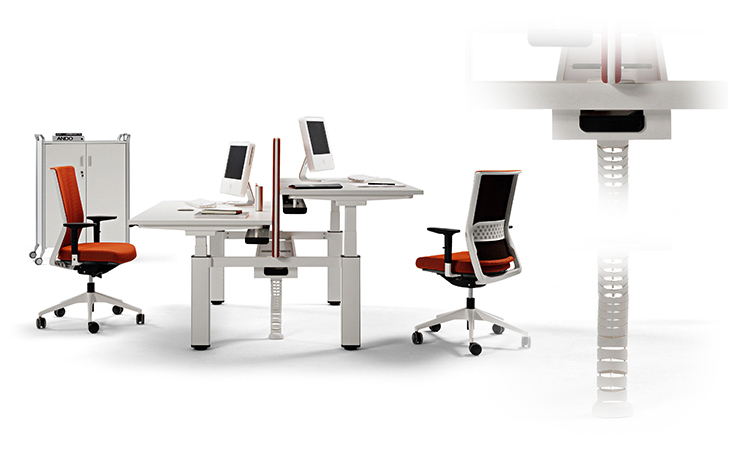 机动性办公桌,一个可以可调并固定办公桌高度的概念,在你工作的时候同步管理你的健康。在每天工作几个小时里,不仅能带来积极的健康益处,还能让员工集中精力提高工作效率。