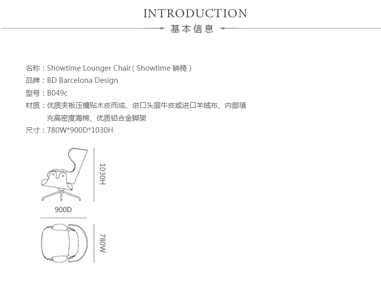 西班牙设计顽童 Jaime Hayon 2010 年在米兰家具展上再次吸引所有人的目光,Jaine Hayon 与西班牙家具厂牌 BD Barcelona Design 合作的 Showtime 系列家具自推出后俨然成为Jaime Hayon 个人的经典代表作,在 2010 年加入了新成员 Showtime Lounger 休闲椅,当中似乎不难发现有着 Charles & Ray Eames Lounge Chair and Ottoman 的影子,重新诠释这张20世纪经典椅款 Hayon 对设计大师致敬的同时,也注入更多 Hayon 幽默诙谐的设计手法。 Showtime 系列家具主要使用的材质和构造包括:优质夹板压模贴木皮而成、进口头层牛皮或进口羊绒布、内部填充高密度海棉、优质铝合金脚架。