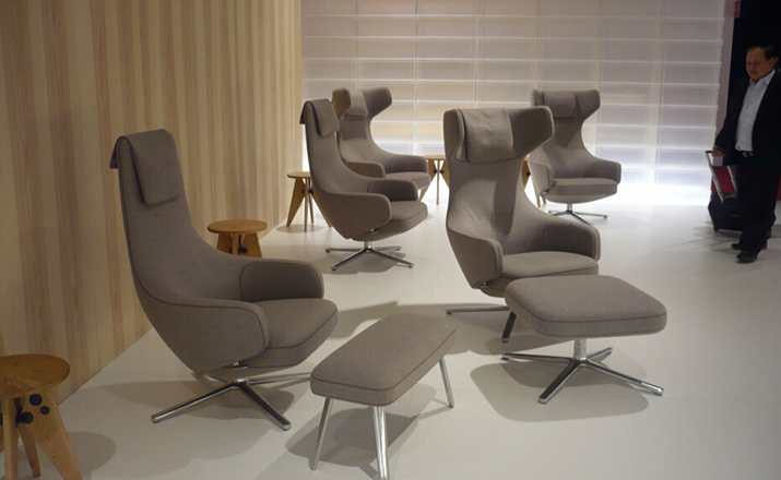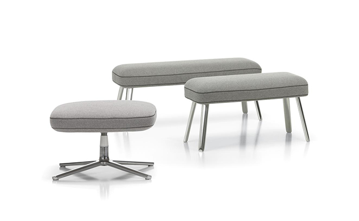 repos lounge chair and ottoman(repos休闲椅&脚踏)由设计大师Antonio Citterio所设计。repos系列休闲椅采用钢制铝合金脚架、聚氨酯海绵填充、高级布艺扪面,可随意调整坐姿和高度,也可以放平躺,配上舒适的羽毛衬垫,无论阅读或者休憩,都非常舒服,符合人体工学,高档舒适,是办公,会议的理想选择。意大利设计师和建筑师 Antonio Citterio赋予了这边椅子永恒的优雅气质与无与伦比的舒适,是当代设计的经典,无论用在办公、商业、家庭都是非常高贵大气的。