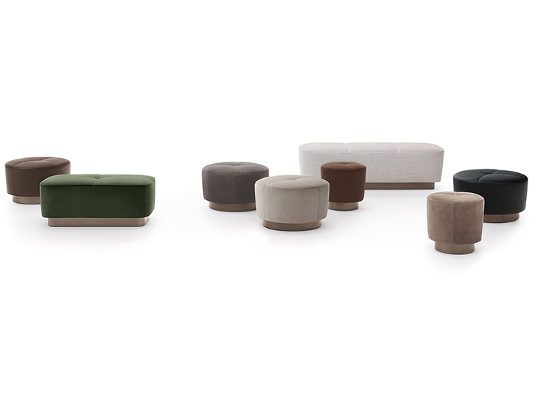 Jacques家族成员众多,包括各种造型和尺寸的脚凳,其特点在于优雅的缝线图样以及方形的纽扣。