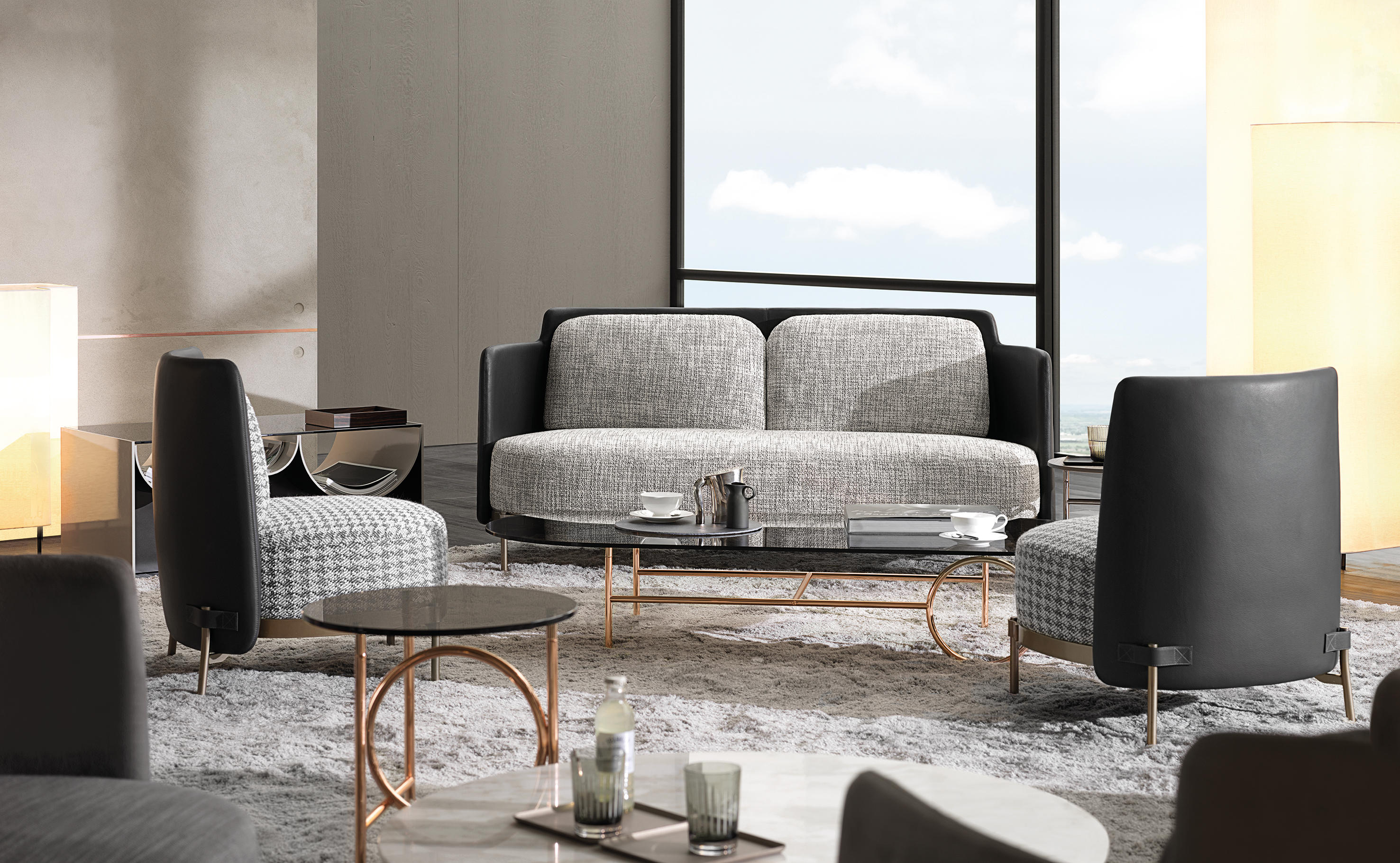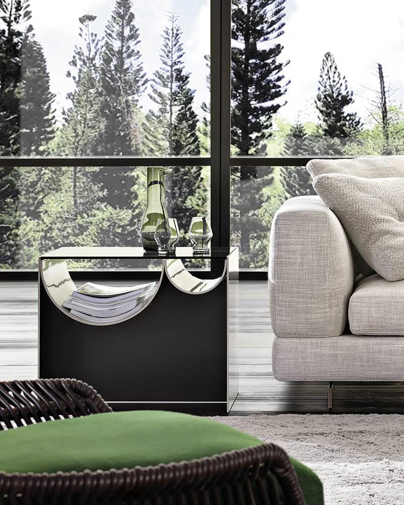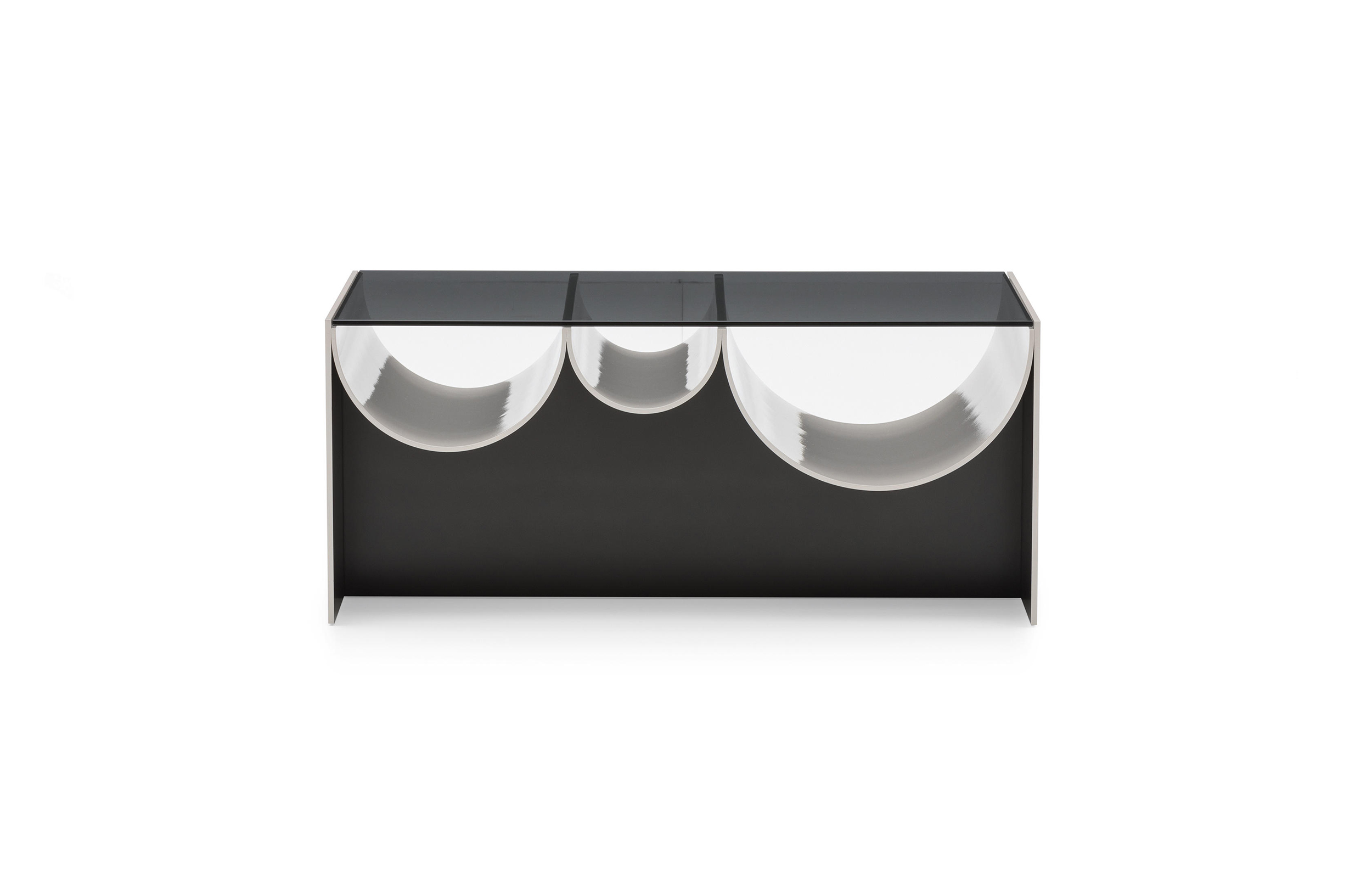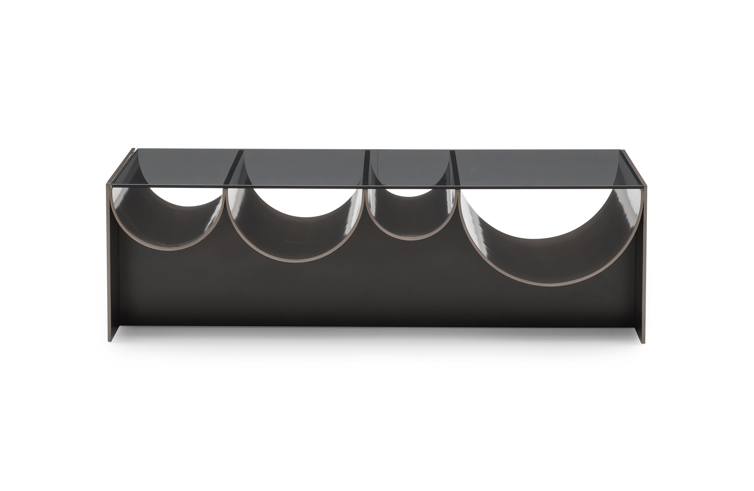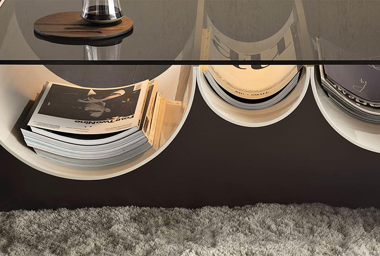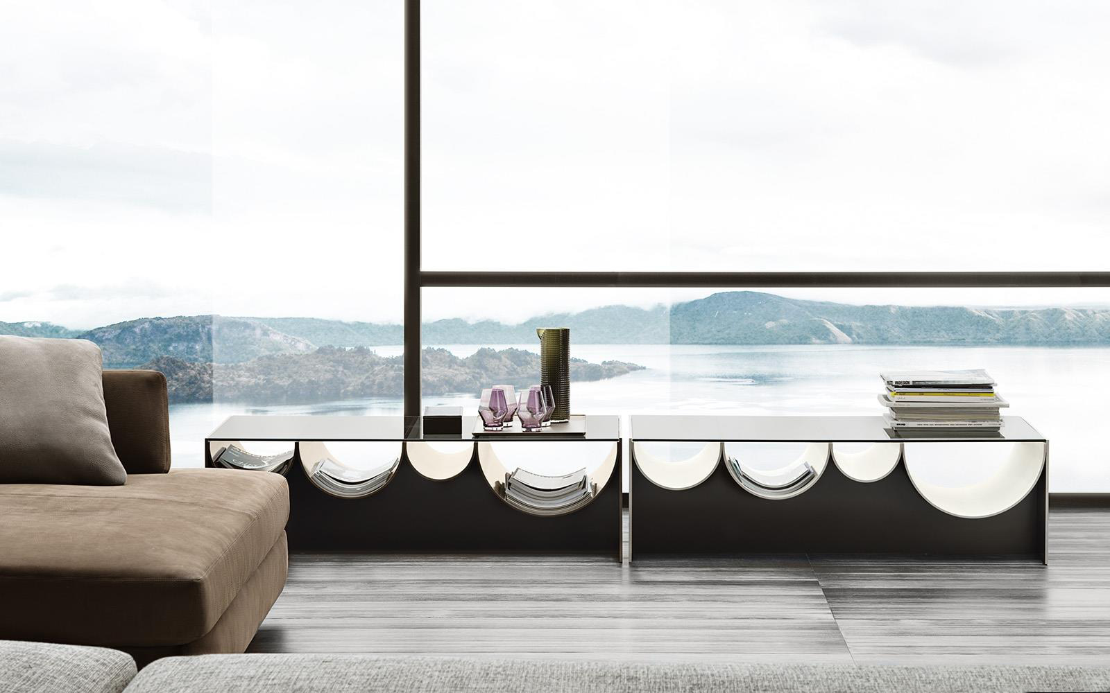 连续的连续的倒置的半圆形使前轮廓蜿蜒而上,适应了空的空间,使使用者能够将杂志、报纸和小物体以平视的方式离开。