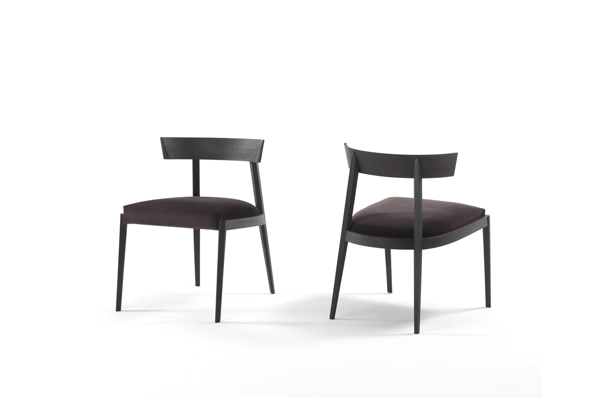 当代在椅子上,一个强大的人物,其魅力在于高度之间的对比朴实带有座位和靠背的细长的腿和严格的纯粹的线条与结构本身。